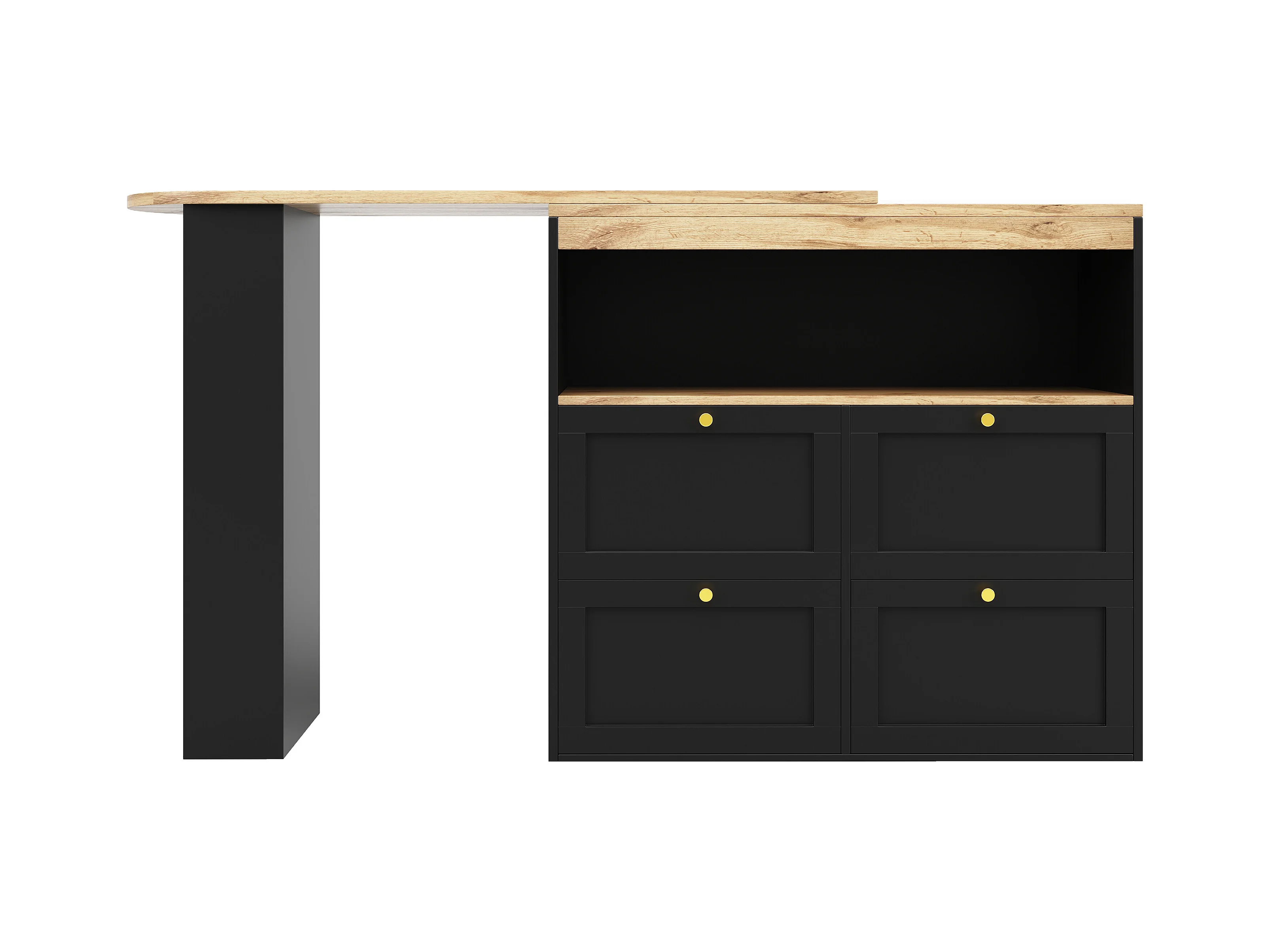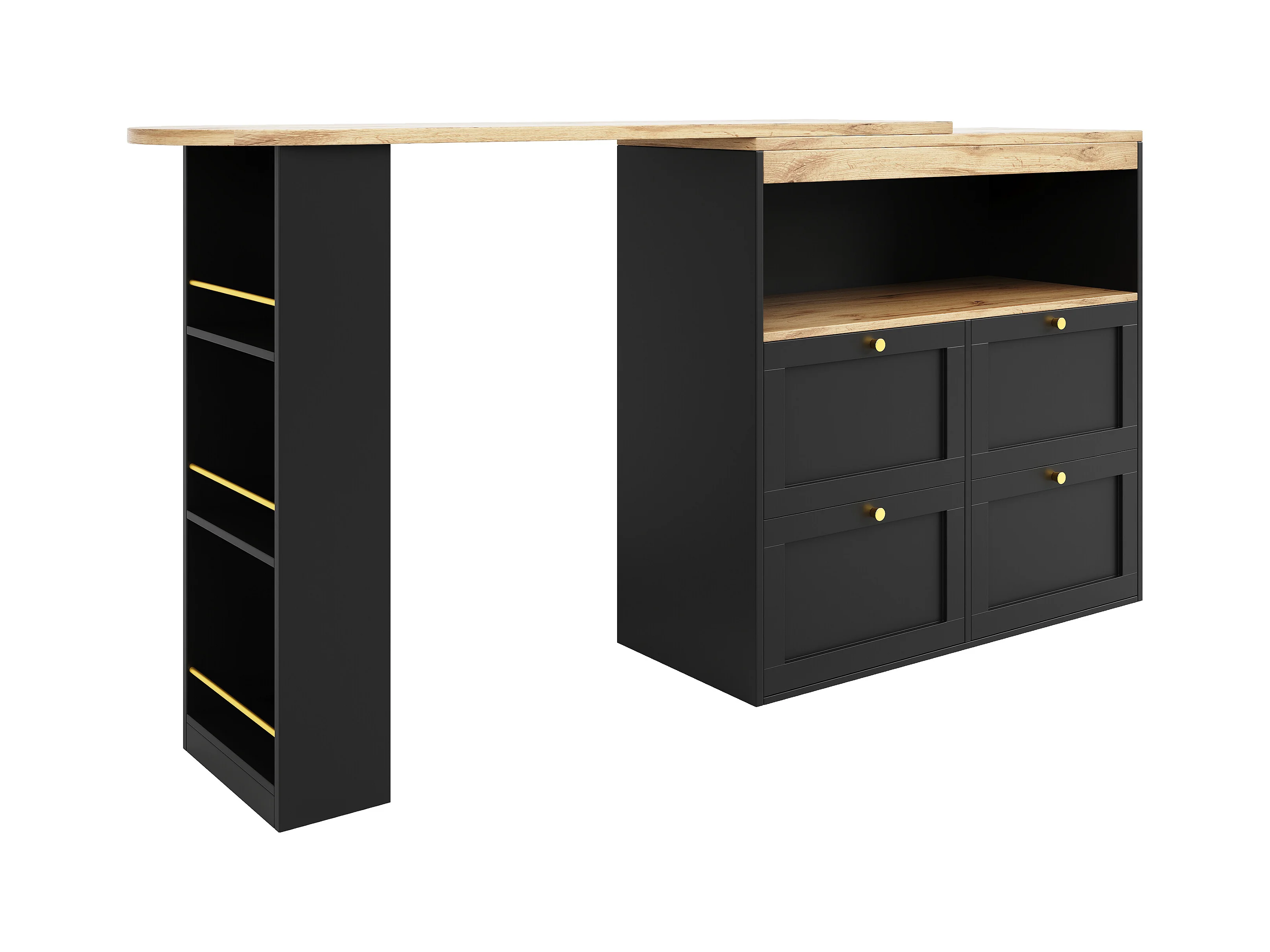 Aparador, Mueble bar giratorio y retráctil - 4 cajones y 4 compartimentos - Negro