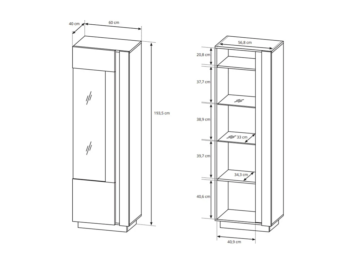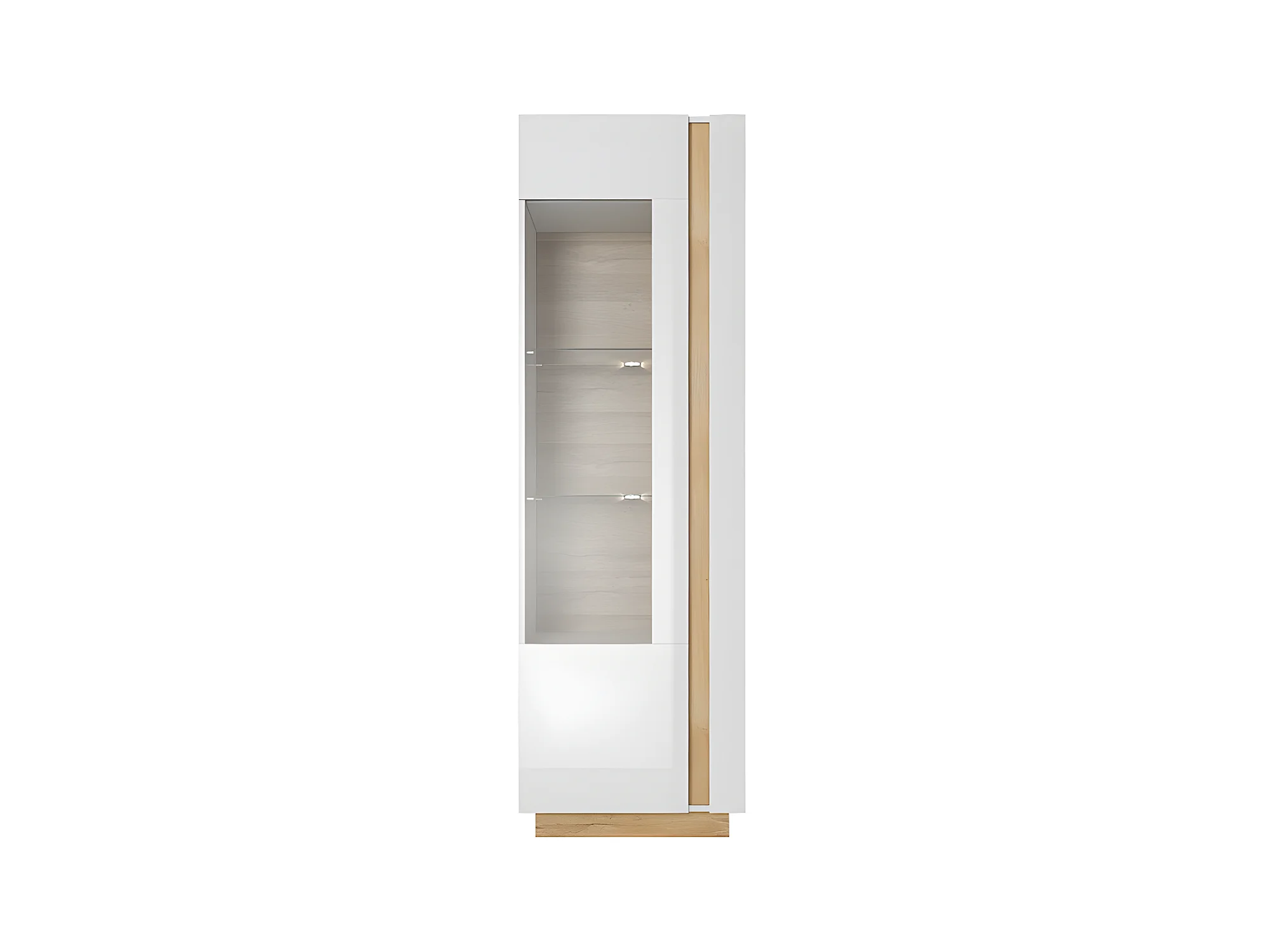 Aparador MURARI - 1 puerta - Con LEDs - Blanco brillante y roble