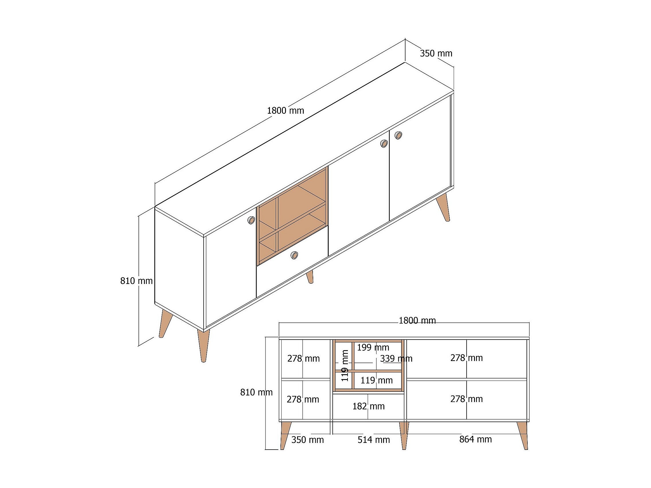 Aparador Aurora-1634 color roble blanco 180x45x80 cm