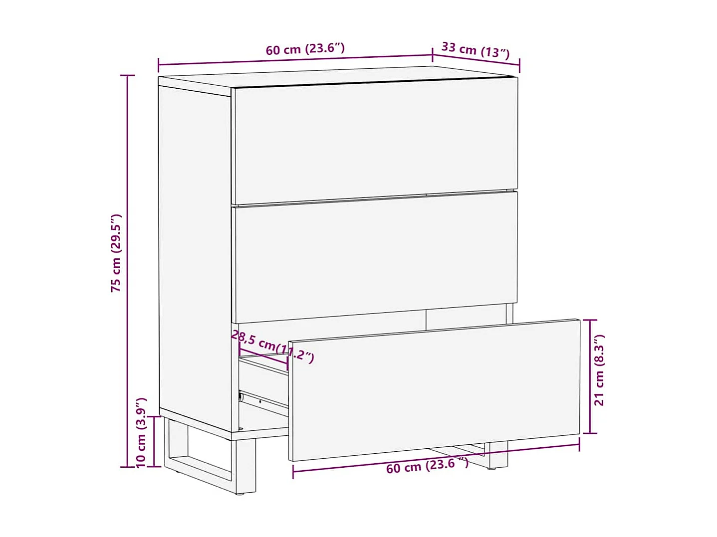 Aparador negro 60x33x75 cm madera maciza mango