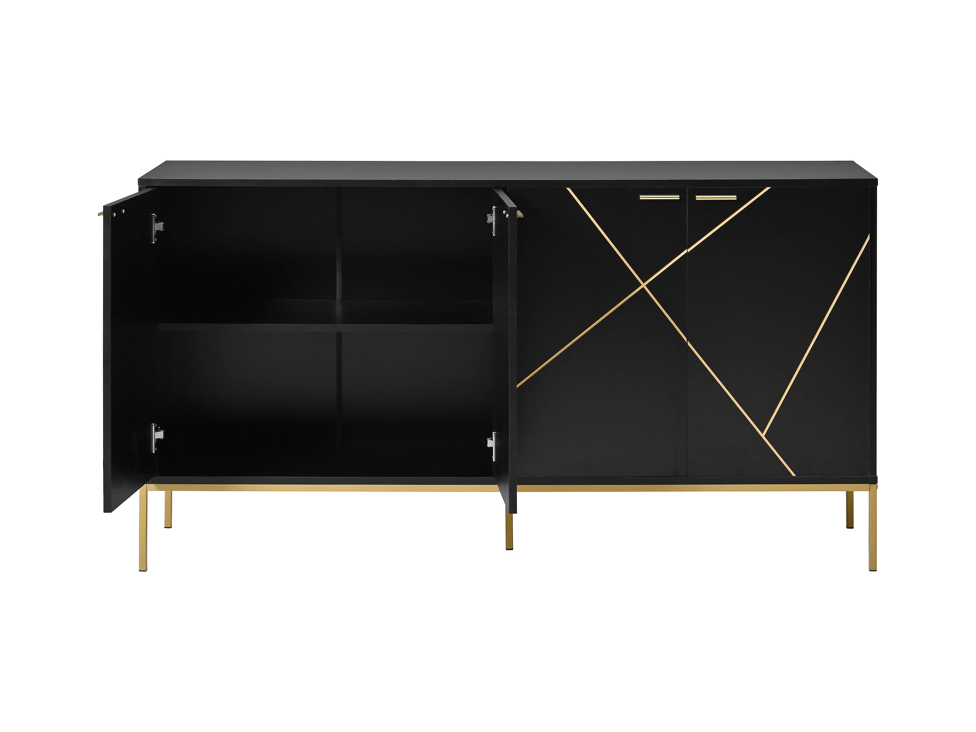 Aparador negro - Aparador con cuatro puertas y patas de metal - decoración línea metalica - para comedor, salón y dormitorio