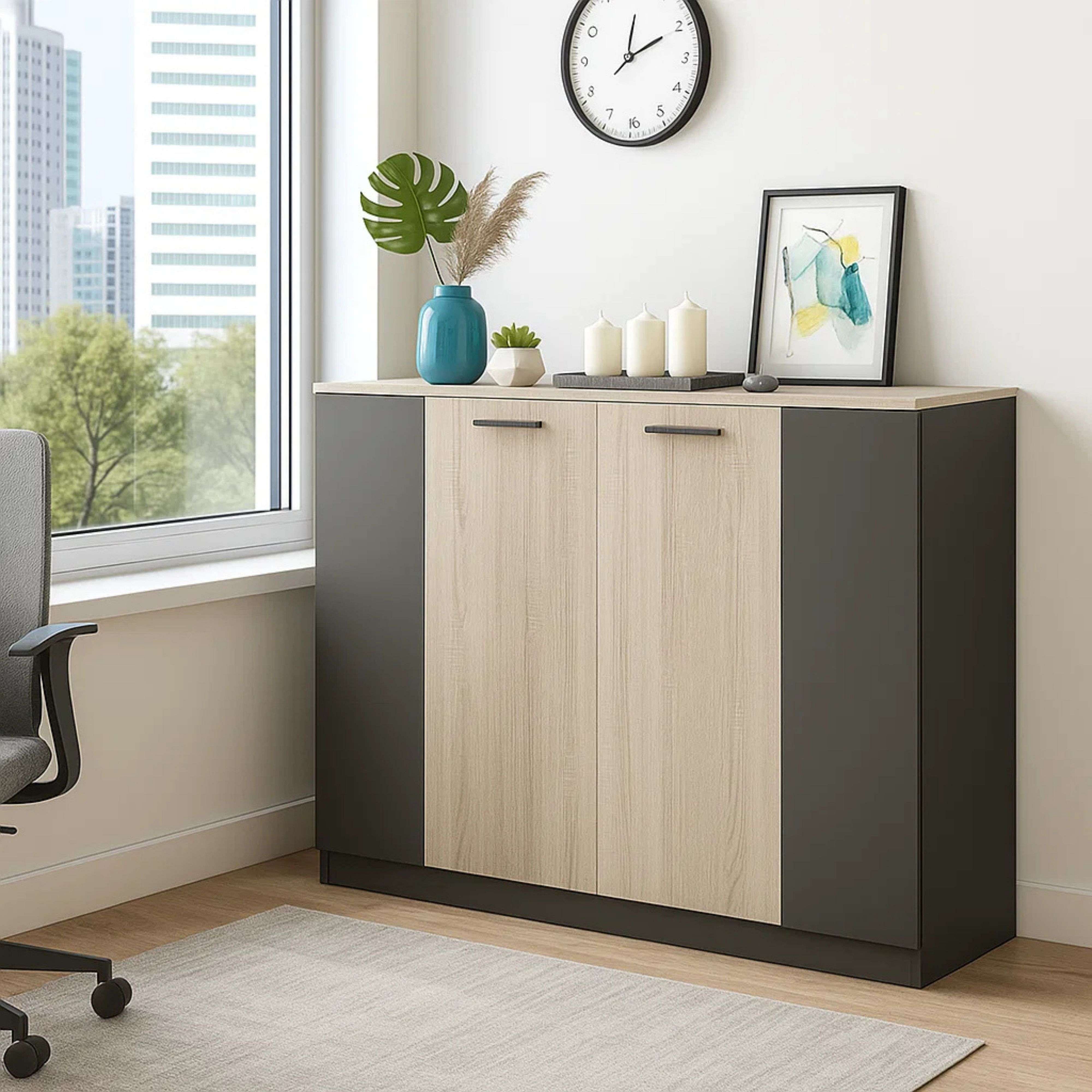 Aparador Salón Comedor Anori Patas Roble Gold Gris 112 cm