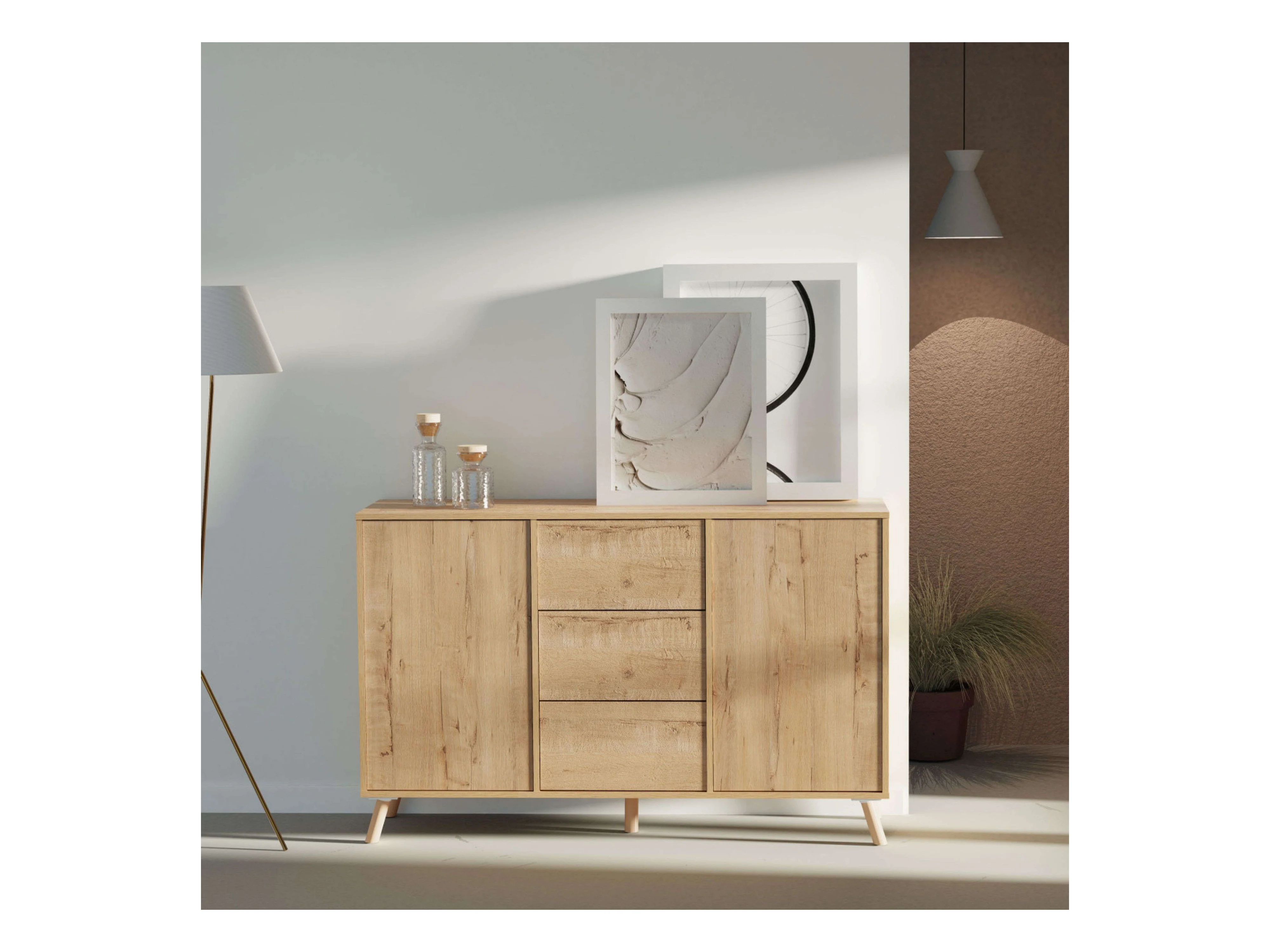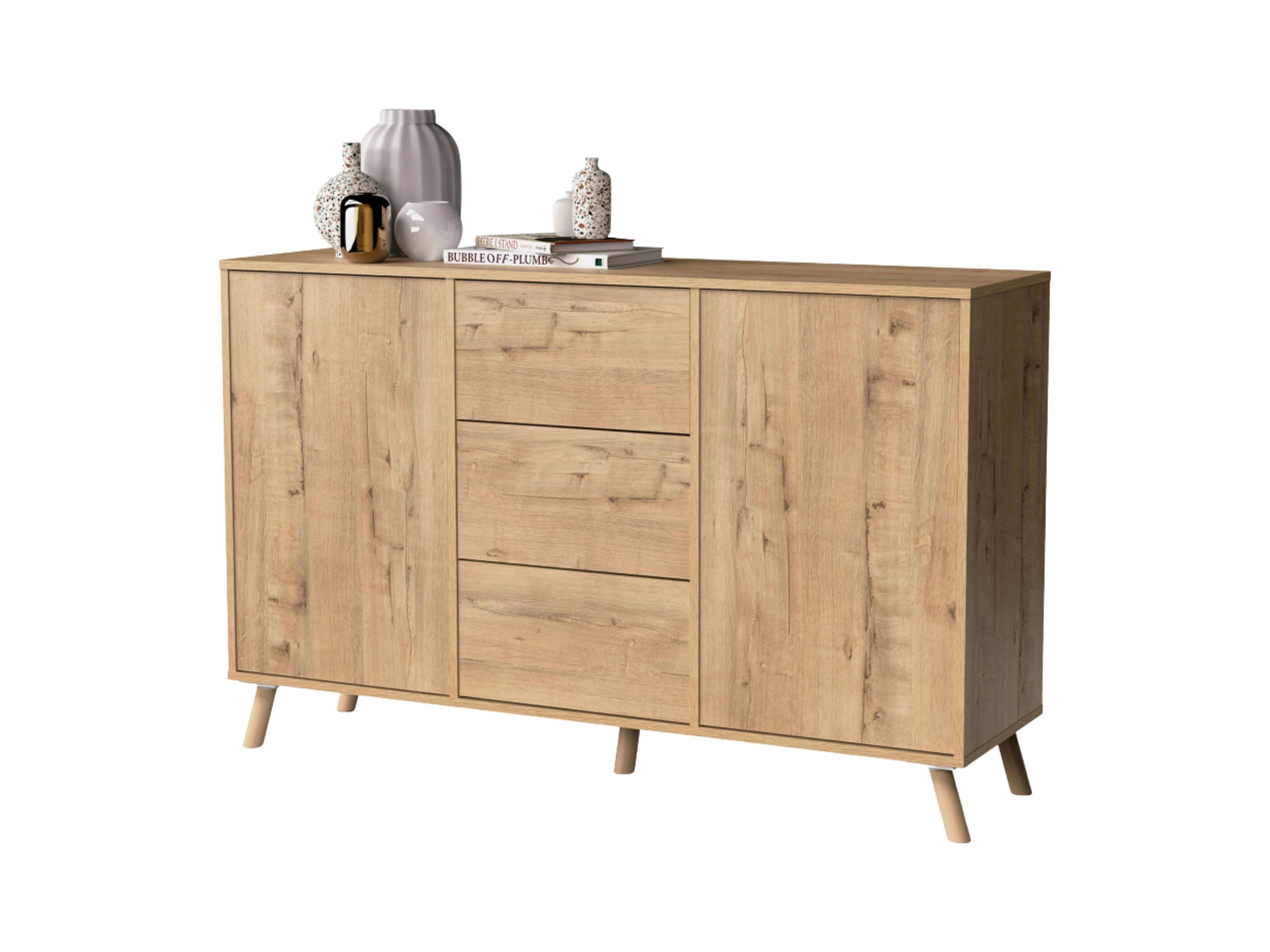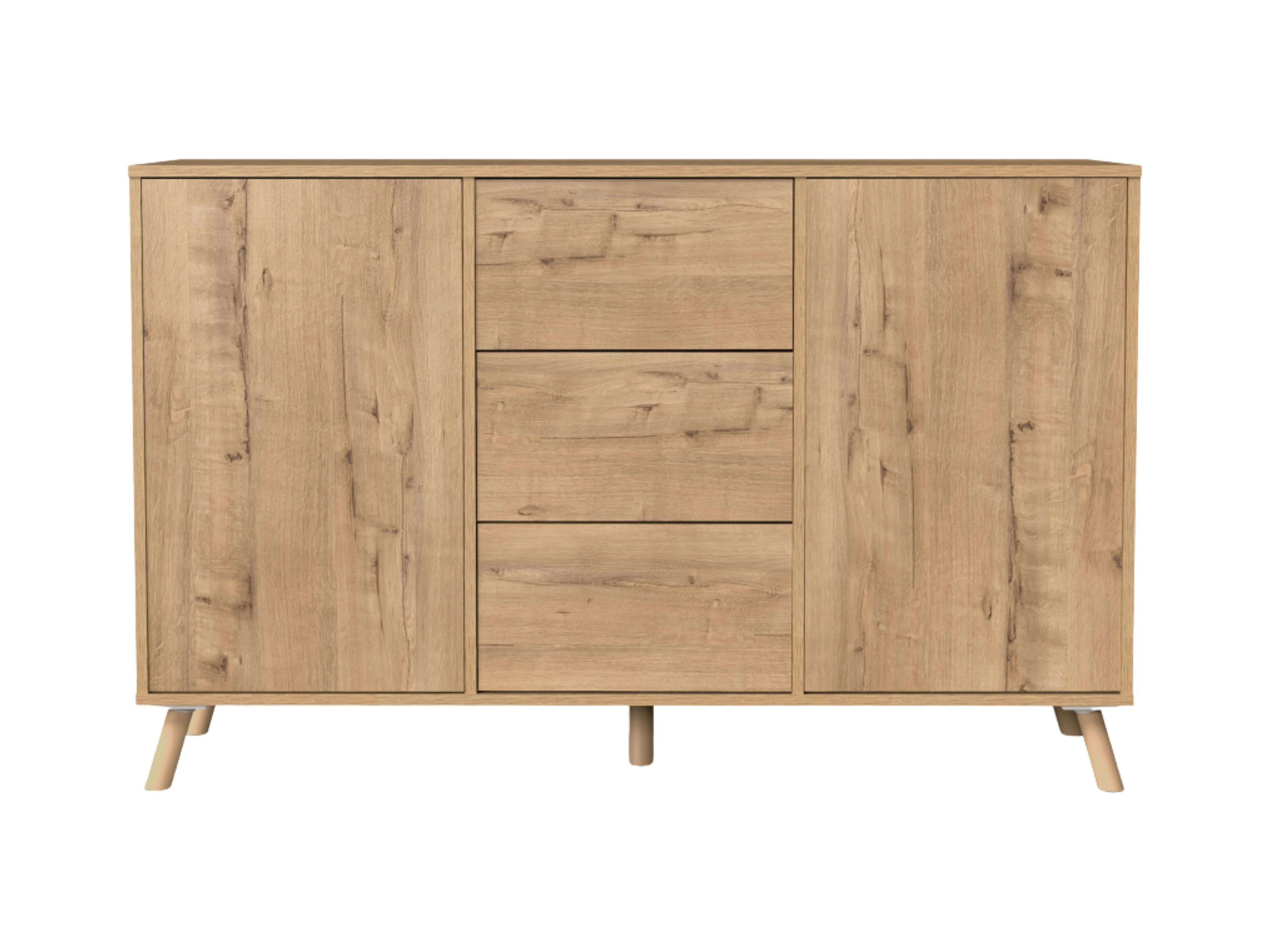 Aparador Oslo Roble Gold 3 Cajones 2 Puertas Push, Roble Gold 140cm
