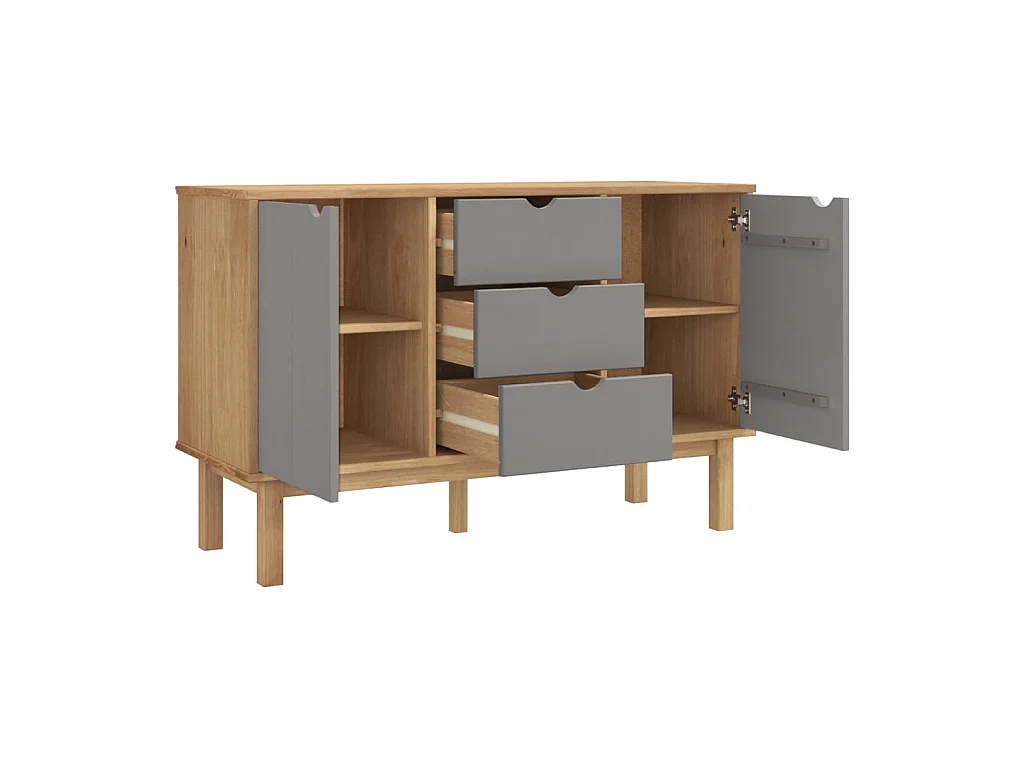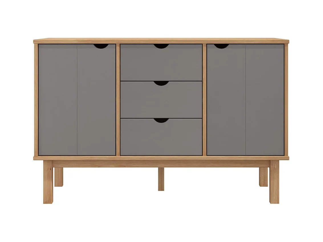 Aparador OTTA madera maciza pino marrón y gris 113,5x43x73 cm