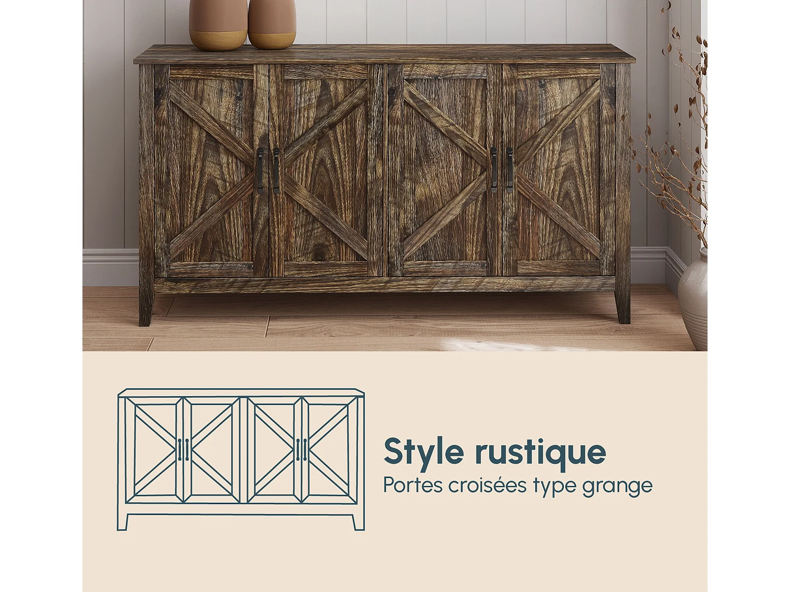 Aparador para Salón comedor en Color Roble Rustic 140x40x80cm Olivia