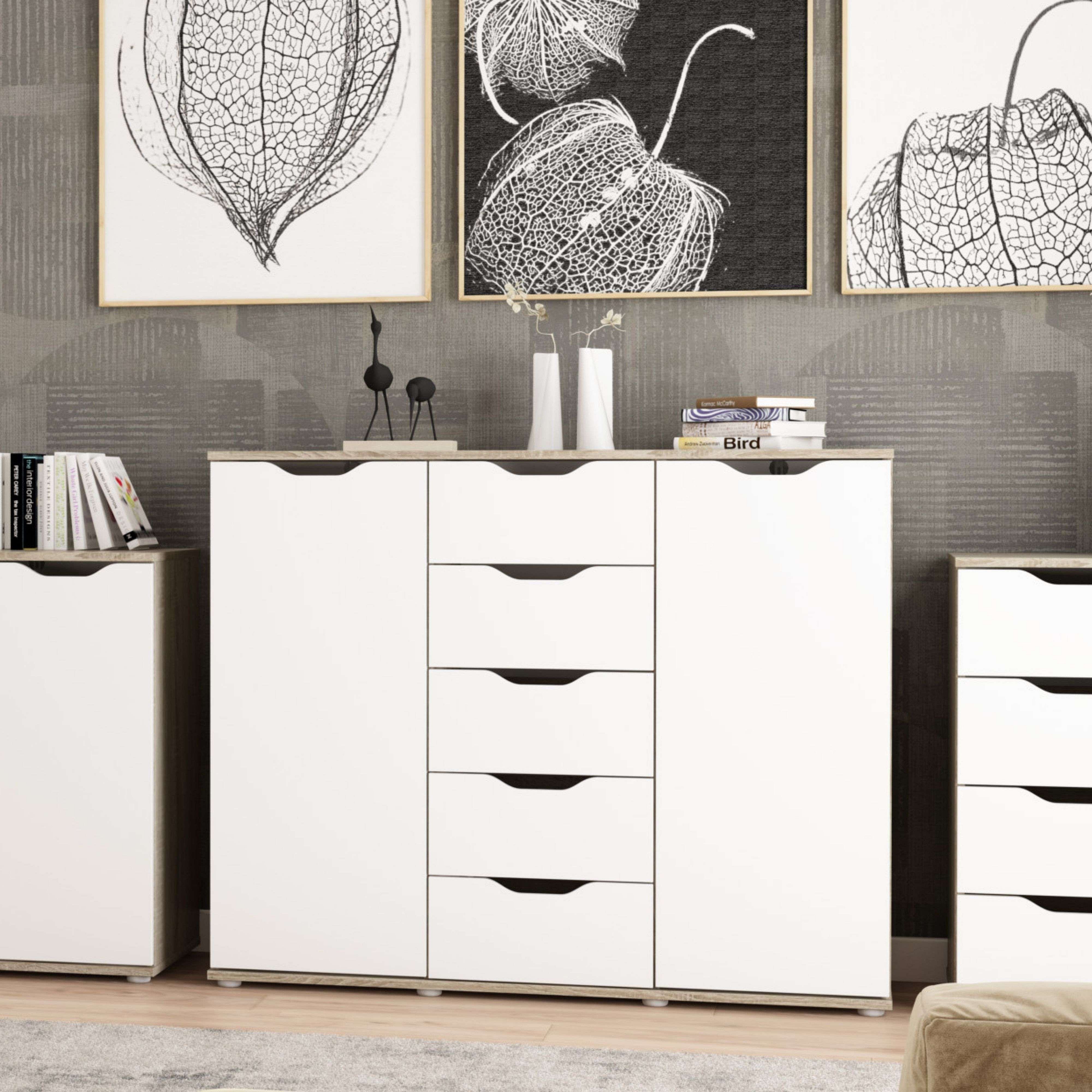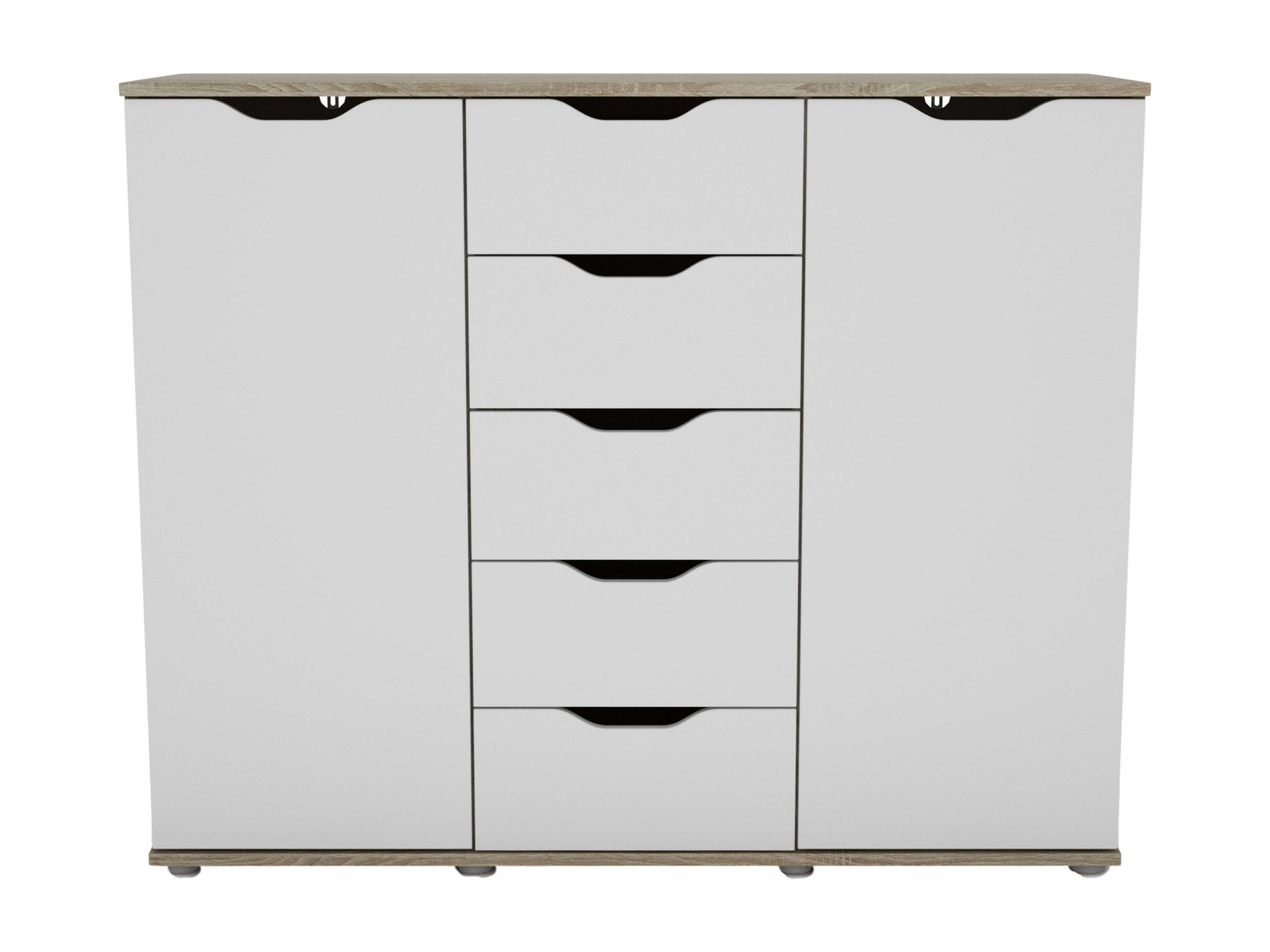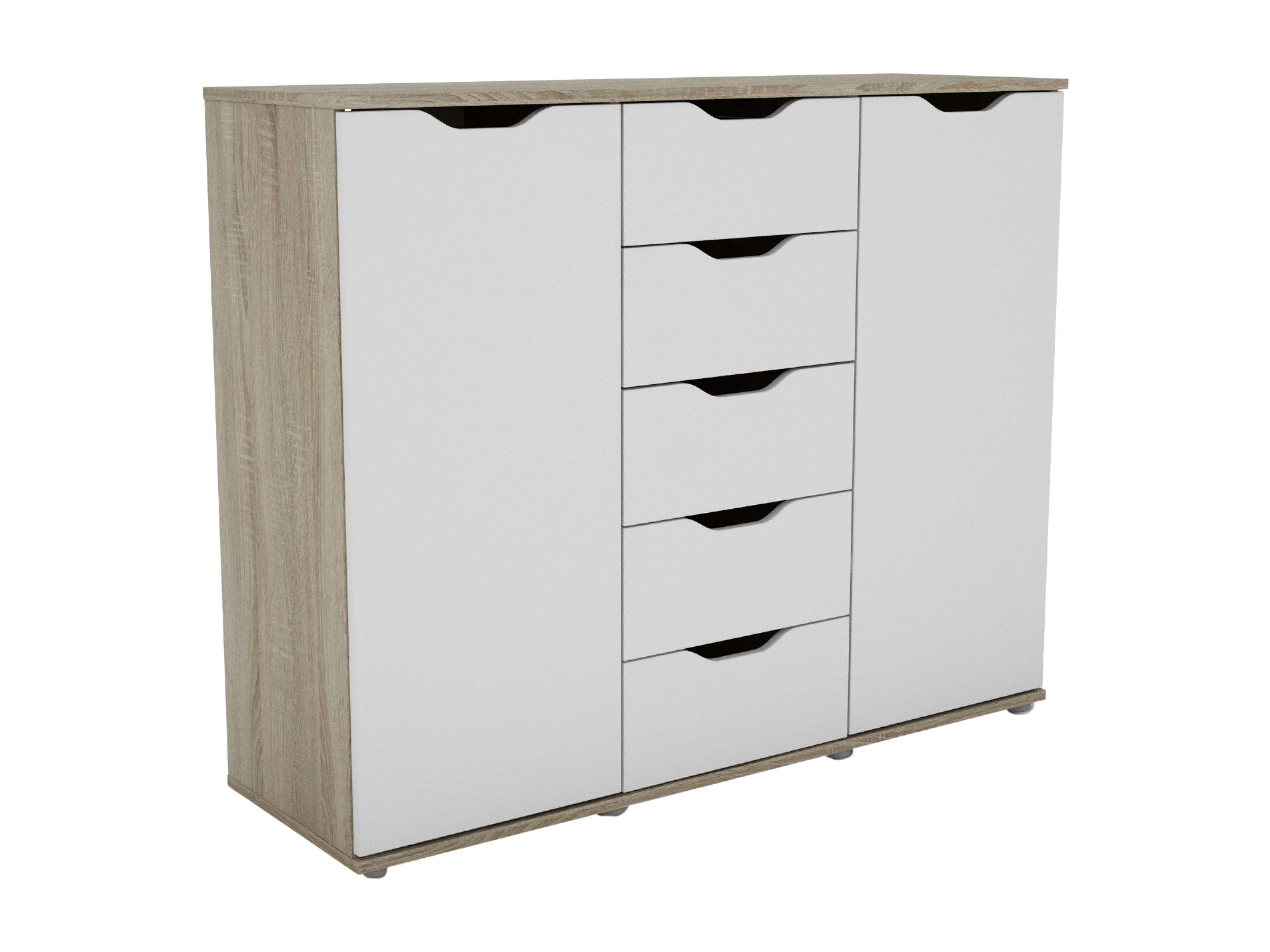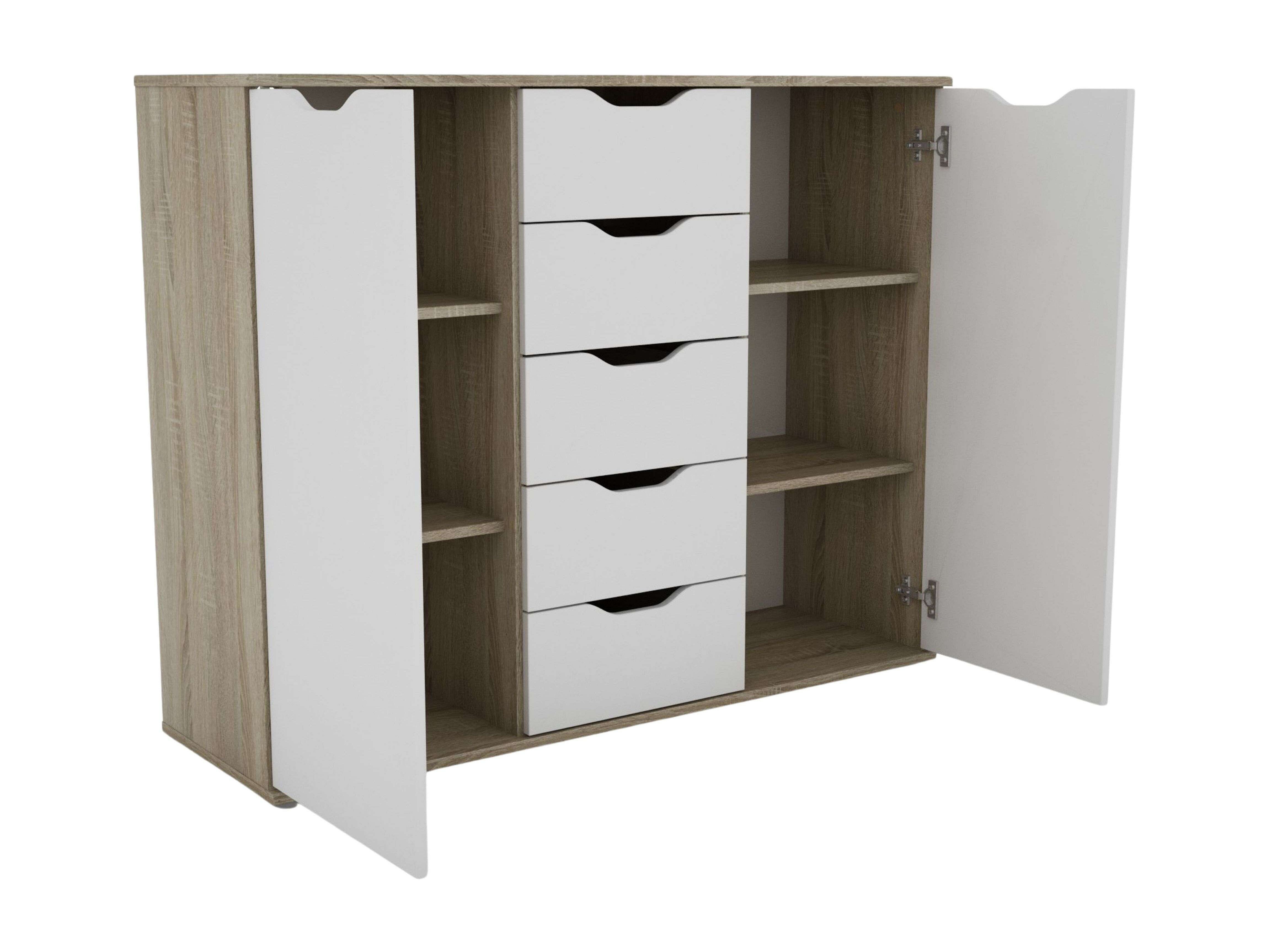 Aparador Parc 2 puertas 5 cajones 4 estantes roble sonoma/blanco 120x97x38 cm