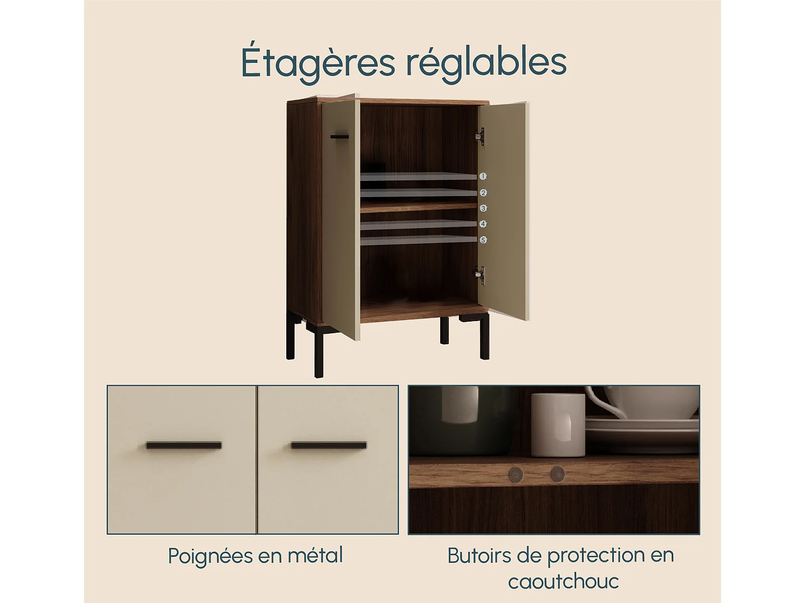 Aparador pequeño para Salón comedor en Nogal Ambar y Beige 60x30x84cm Lander L15