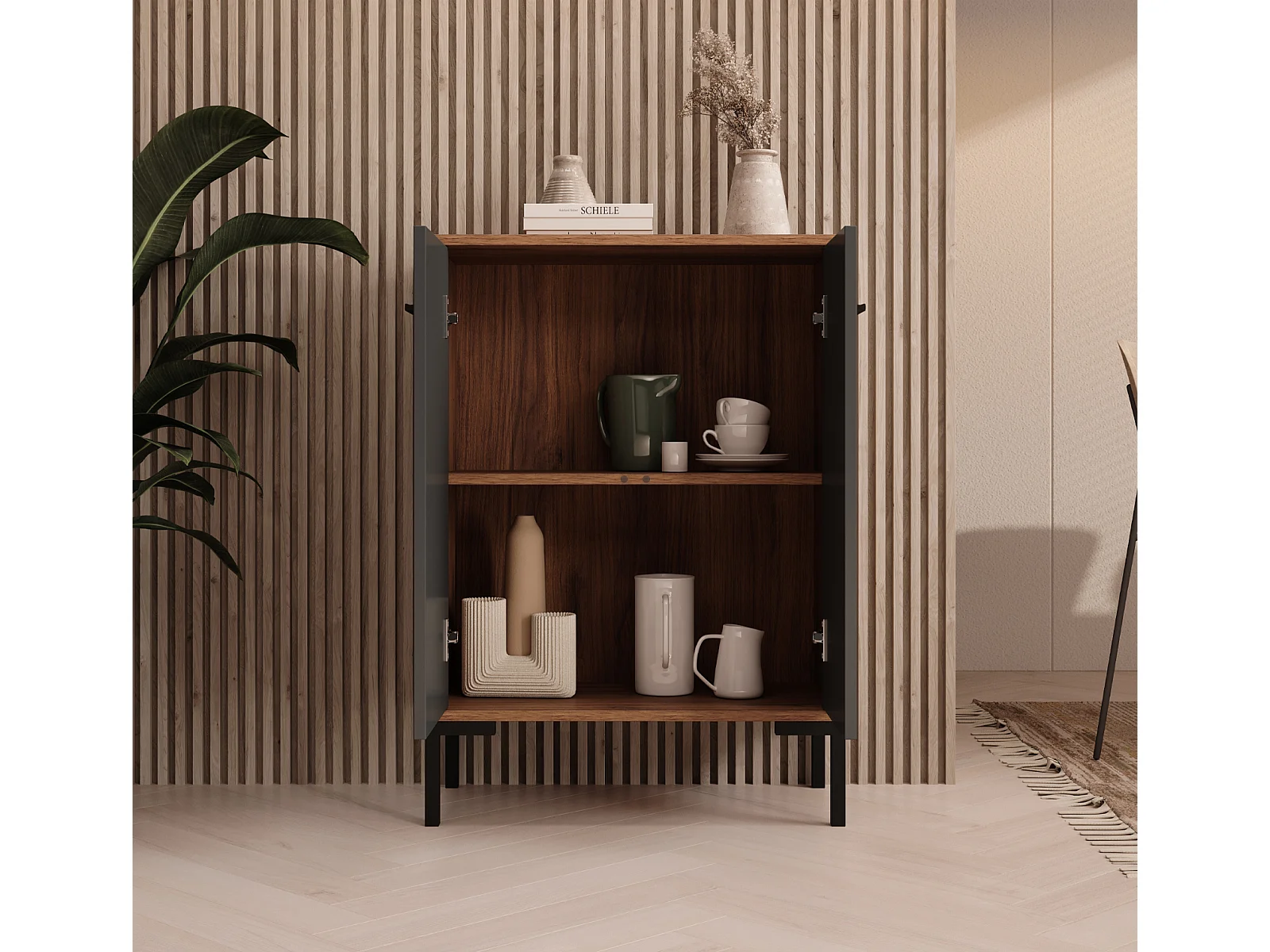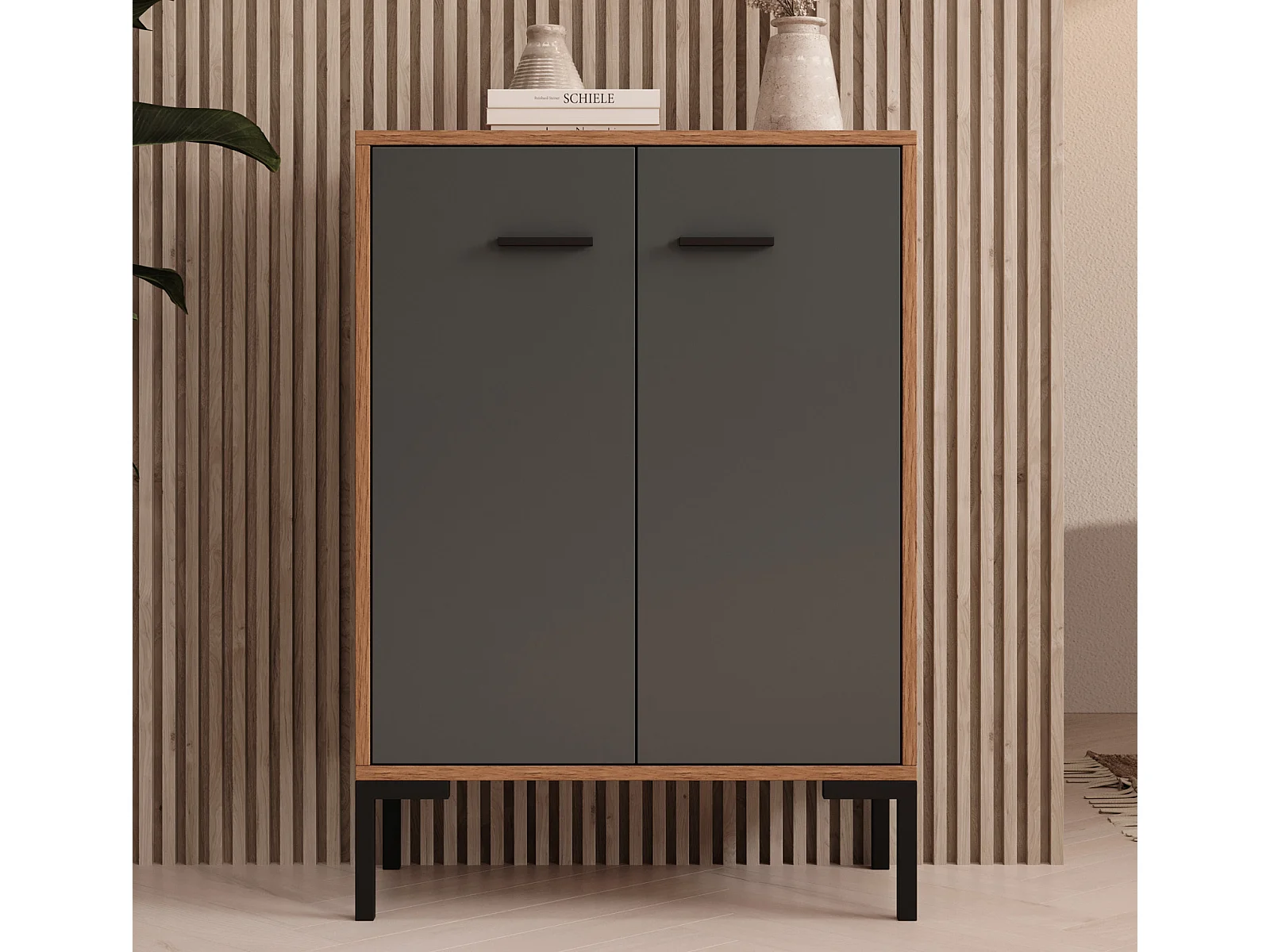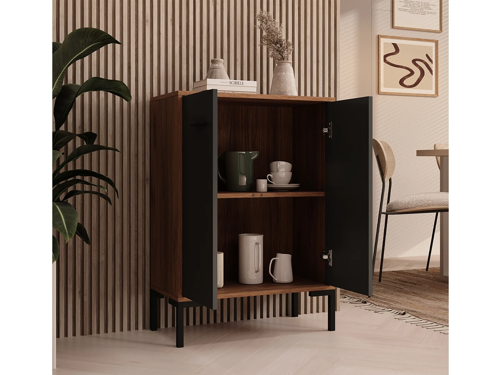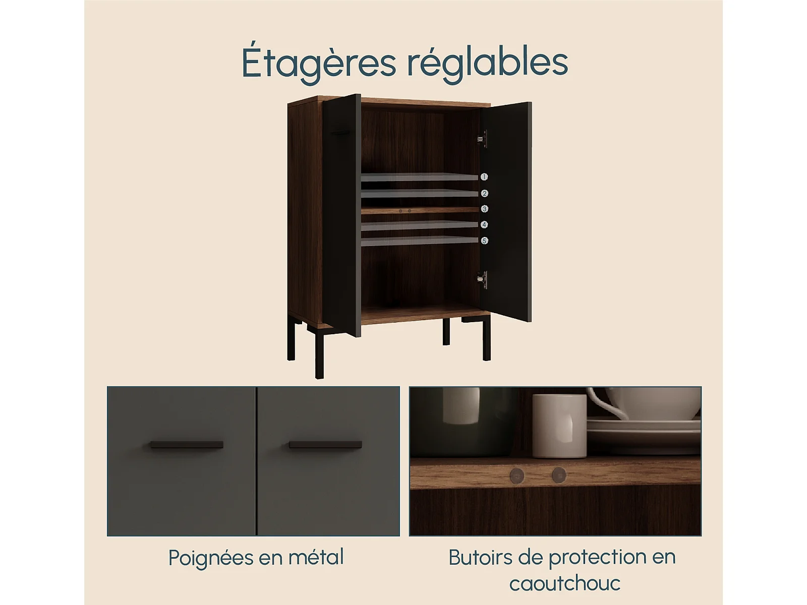 Aparador pequeño para Salón comedor en Nogal Ambar y Gris 60x30x84cm Lander L15
