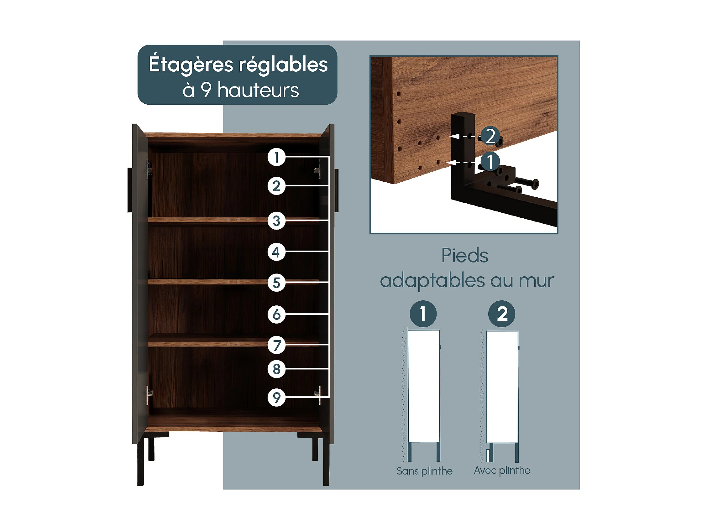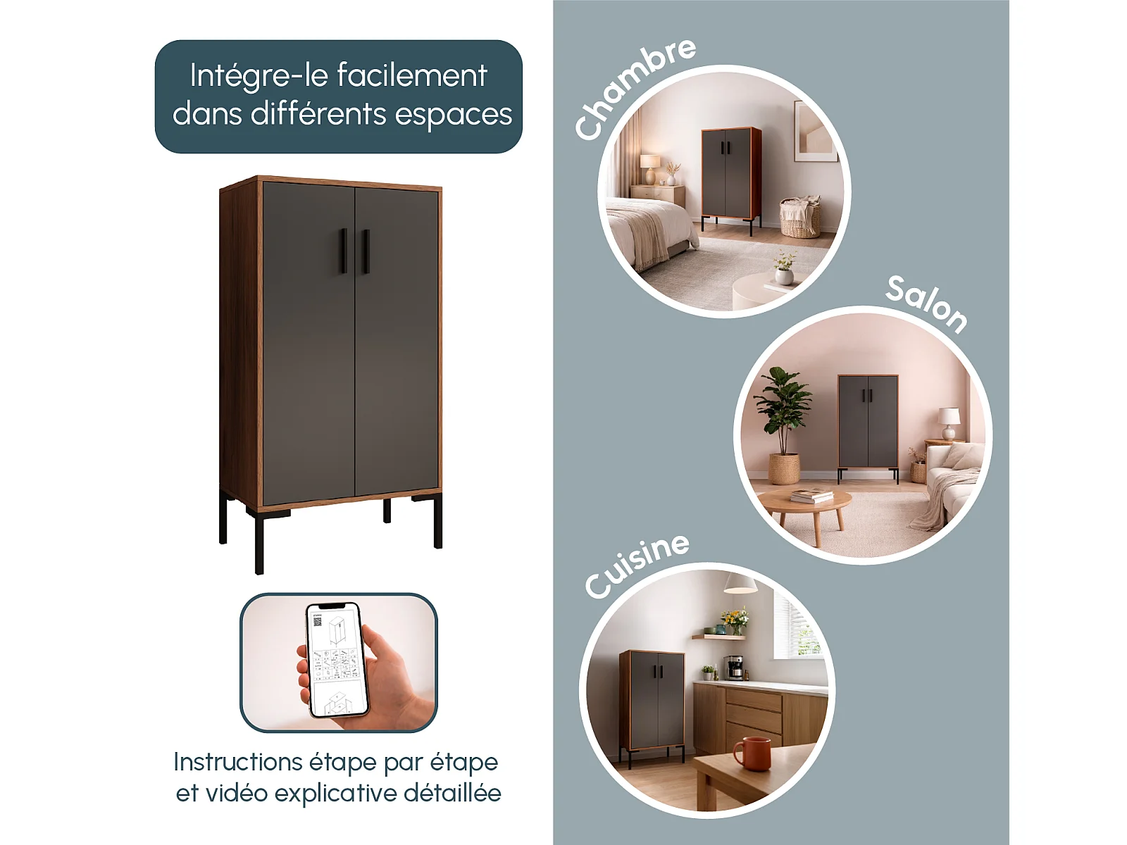 Aparador pequeño para Salón comedor en Nogal Ambar y Gris 60x35x110,5cm Lander L17