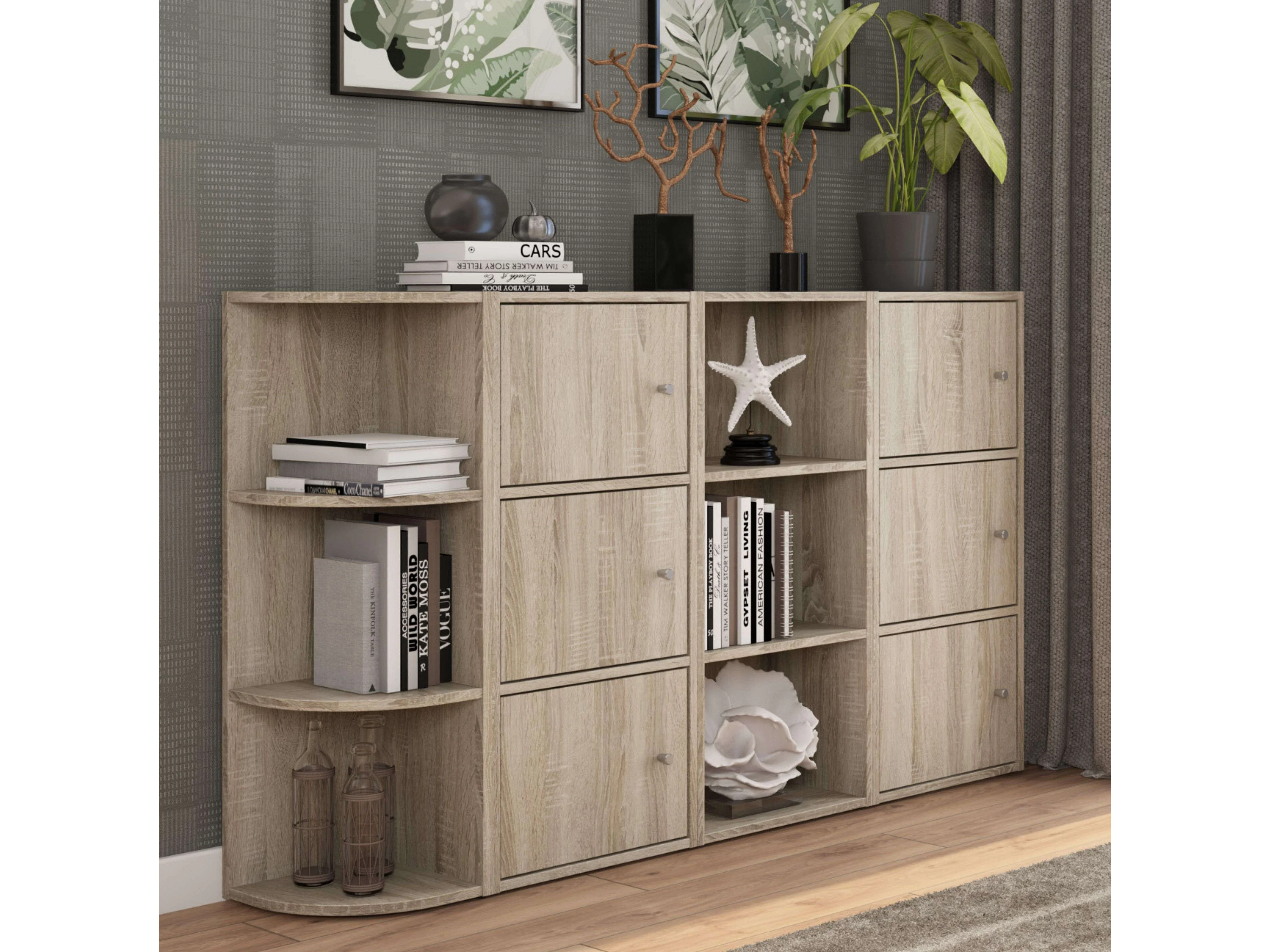 Aparador Plea 2 armarios 3 puertas roble sonoma y madera claro 92x155x29 cm