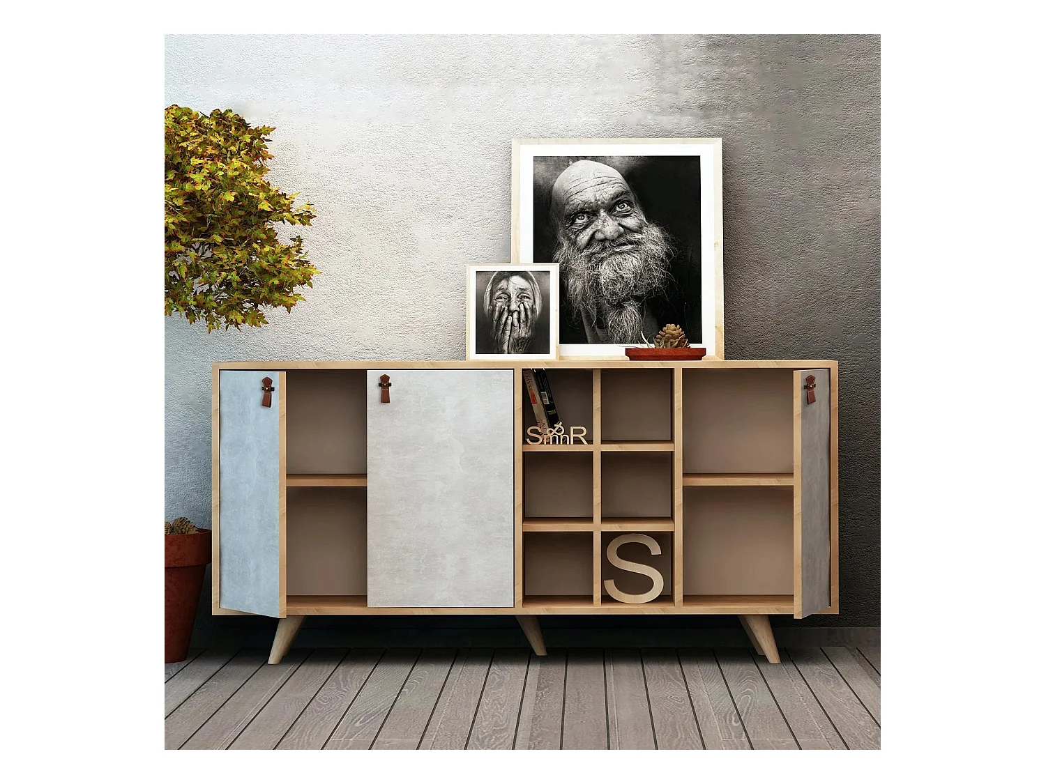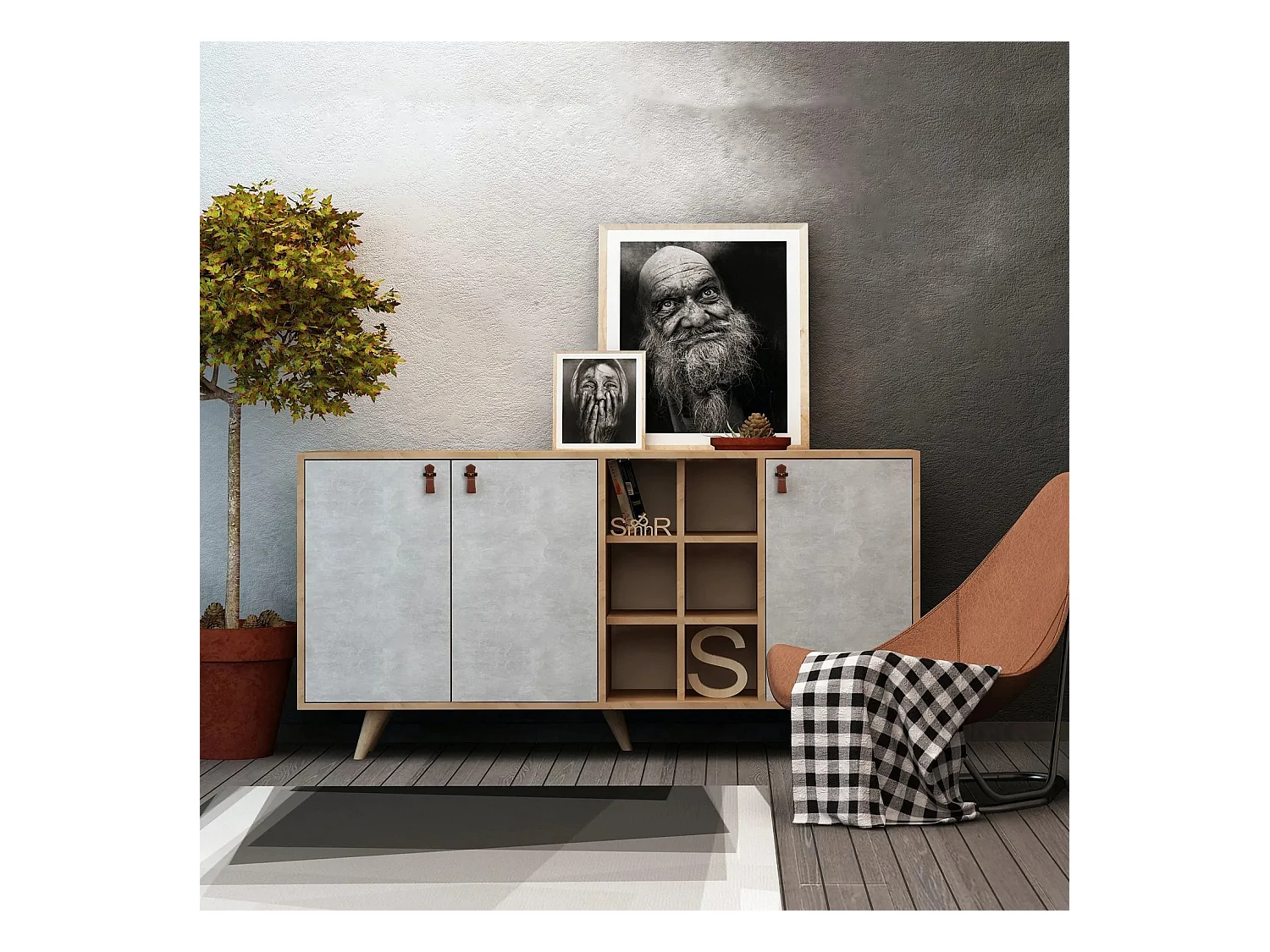 Aparador Planky color roble Gris oscuro 140x40x86 cm