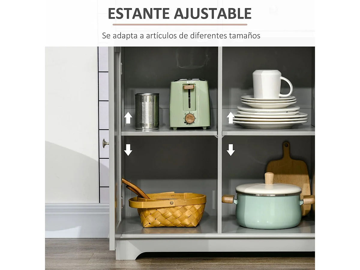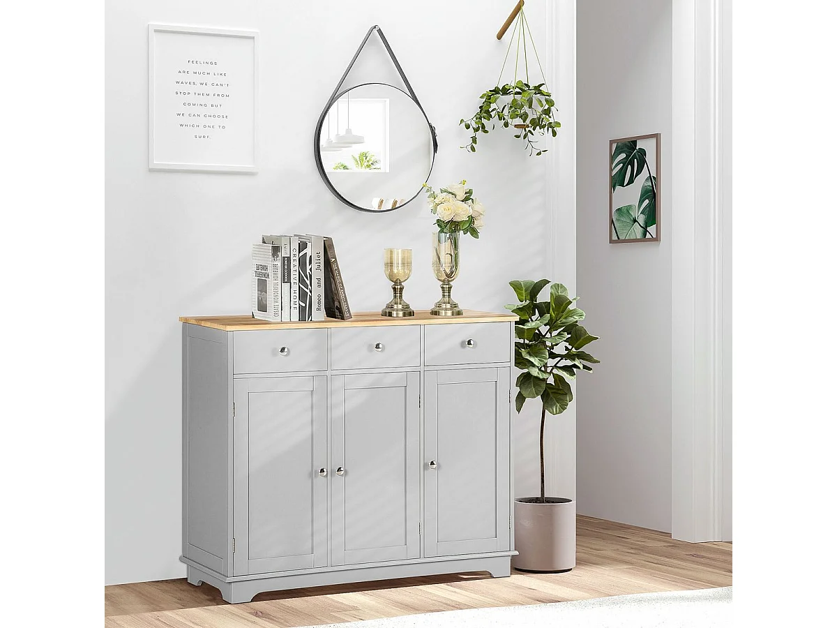 Aparador Refugio Homcom 3 puertas con 3 cajones gris 85x101x40 cm