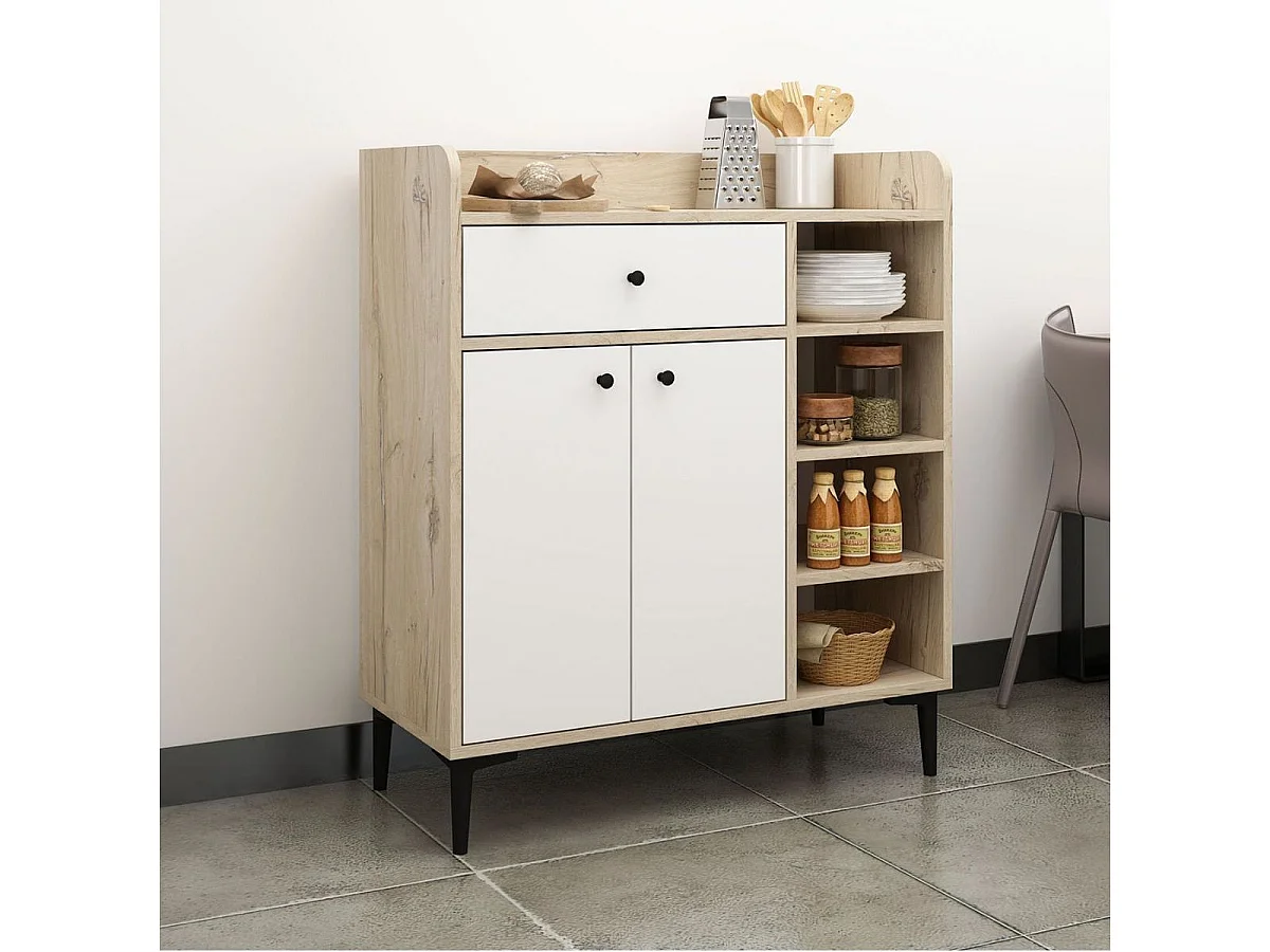 Aparador Reyna armario + cajón + 4 compartimentos natural/blanco 105x90x40 cm