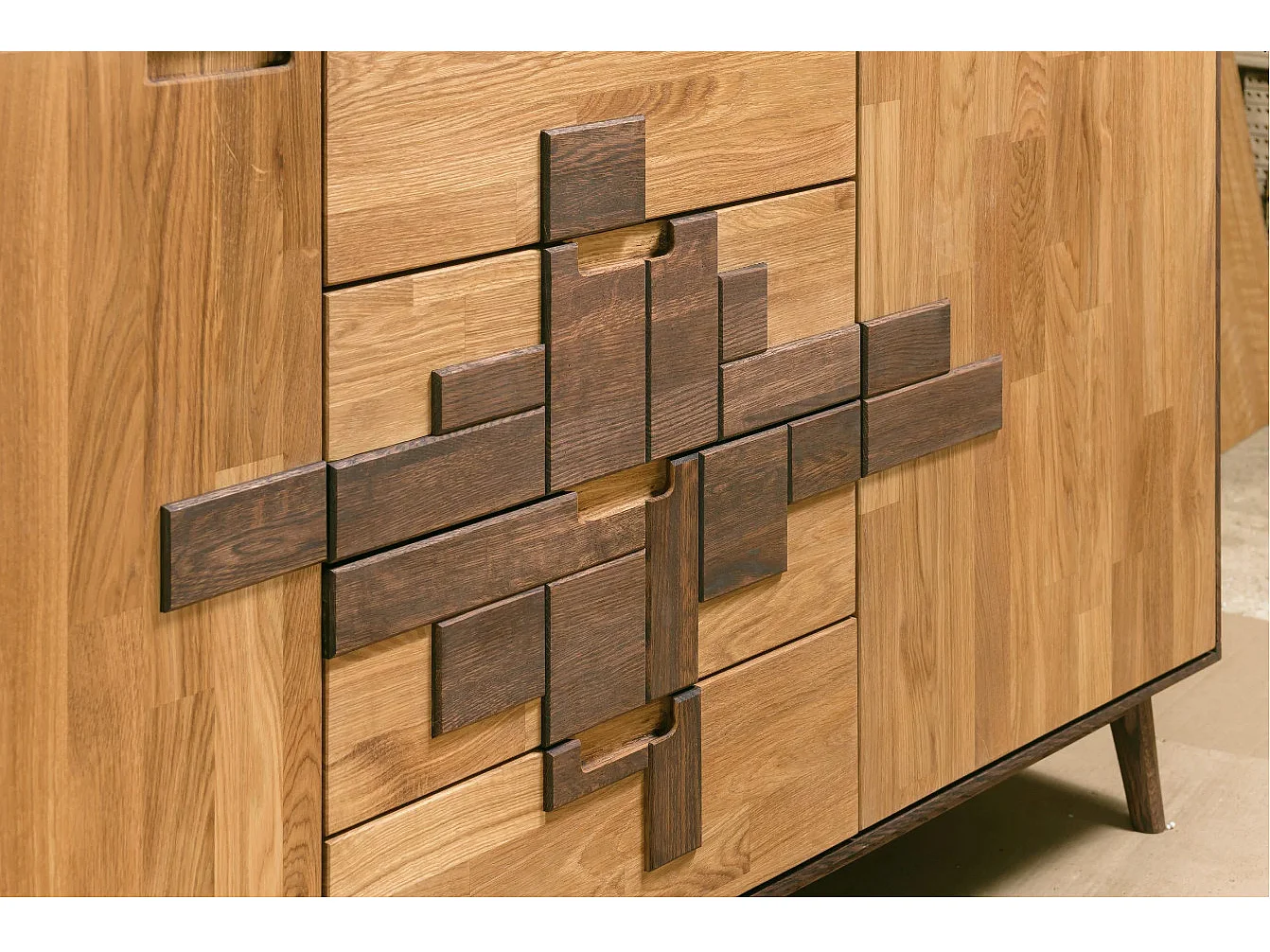 Aparador Kundy madera maciza de roble 2 puertas 4 cajones 160 cm