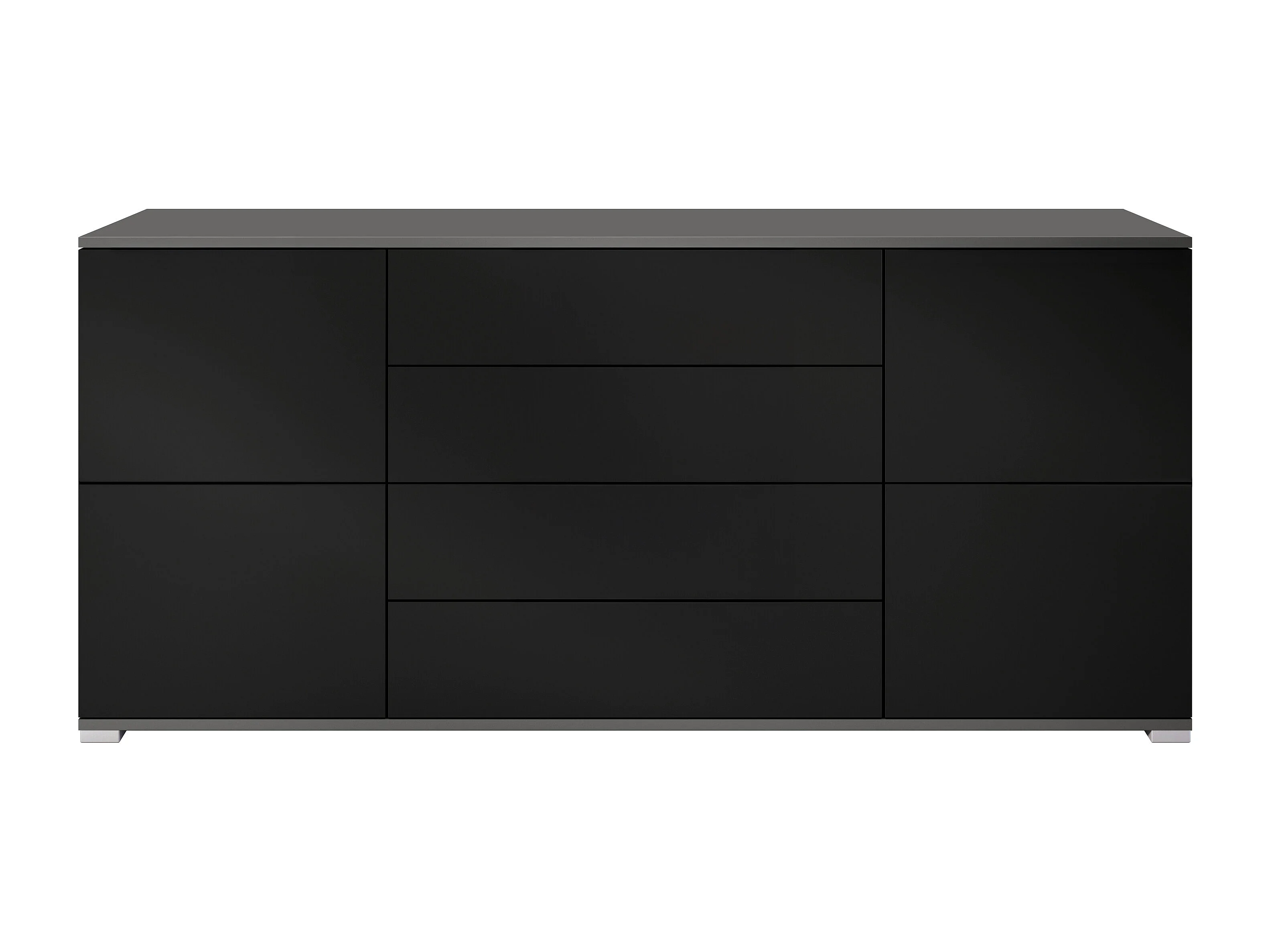 Aparador Rova V2 – Mueble con 4 Puertas y 4 Cajones, antracita mate/negro mate (166,5 x 75,5 x 35)