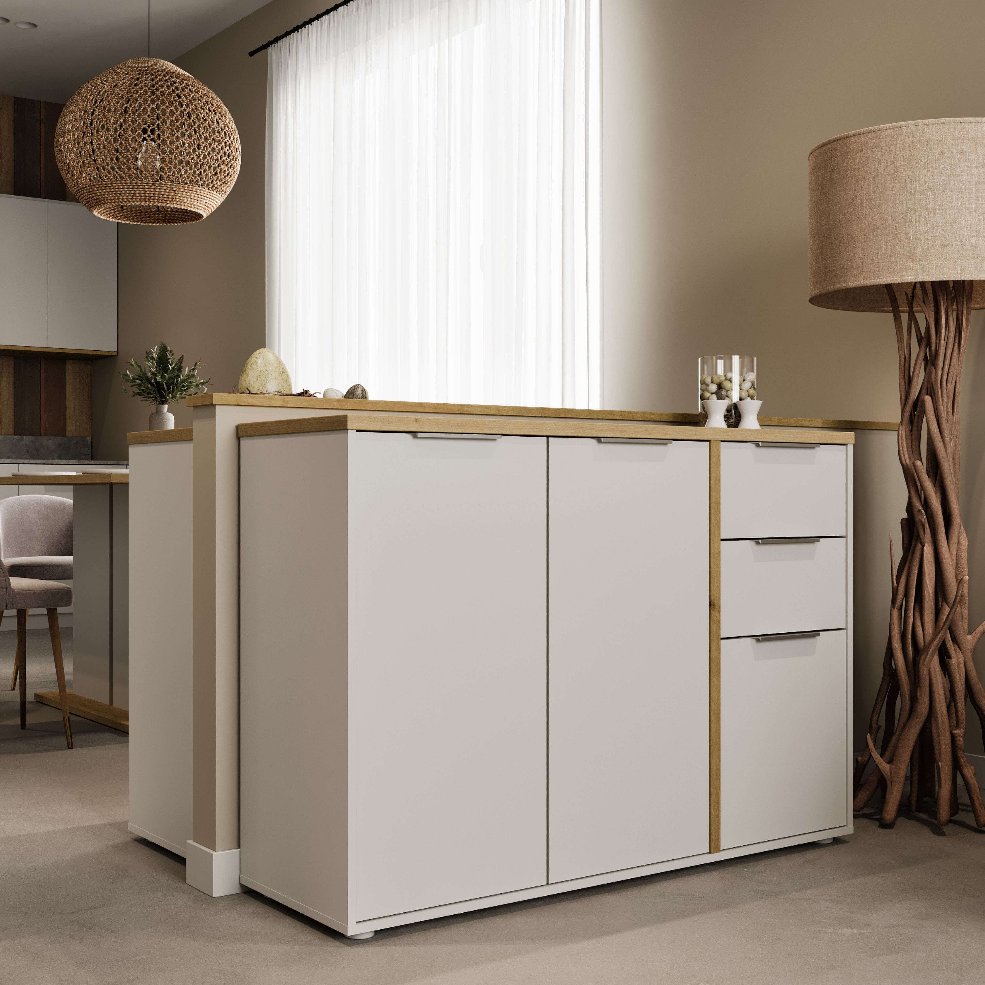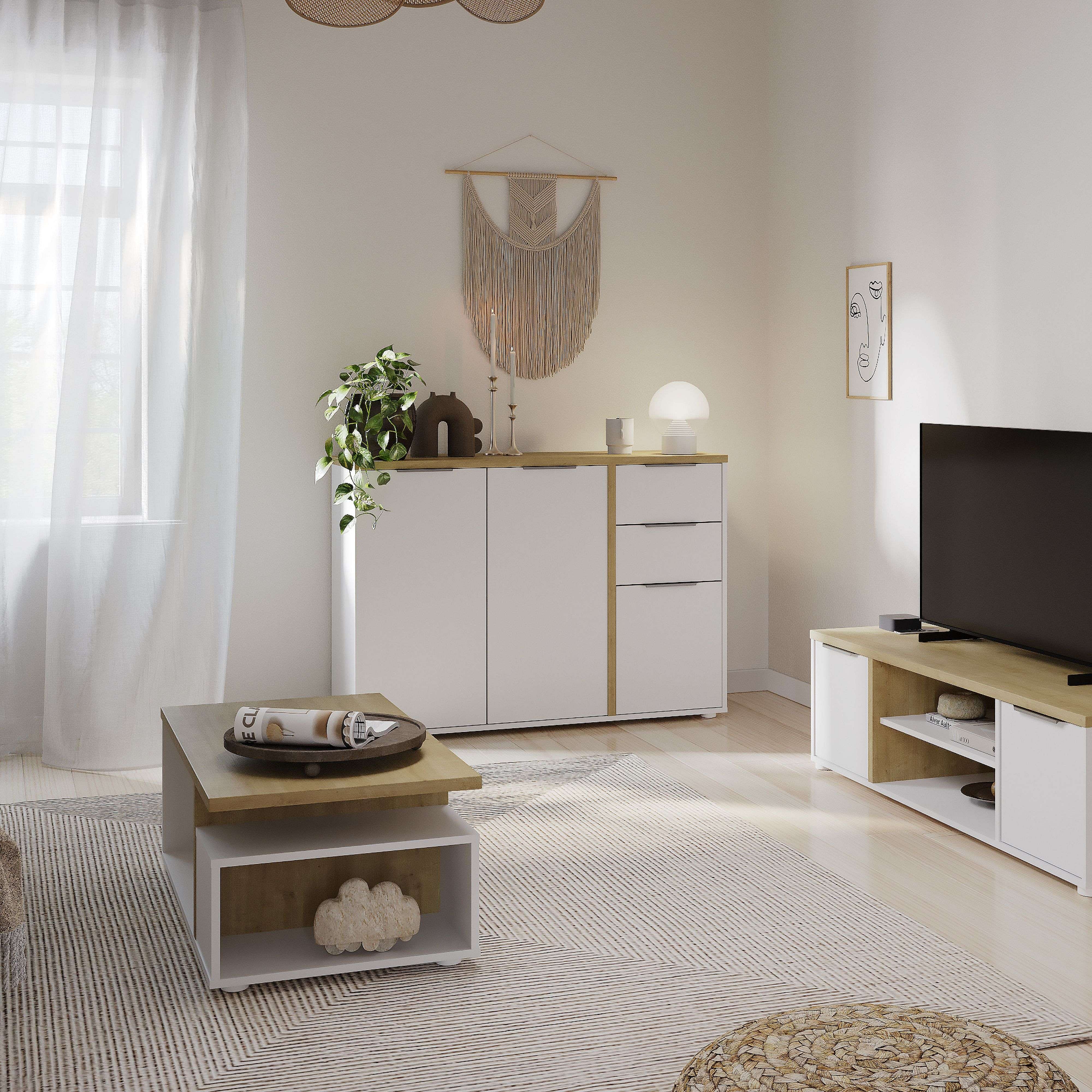 Aparador Salón Acces 3P Roble Hamilton y Blanco Mate 122cm