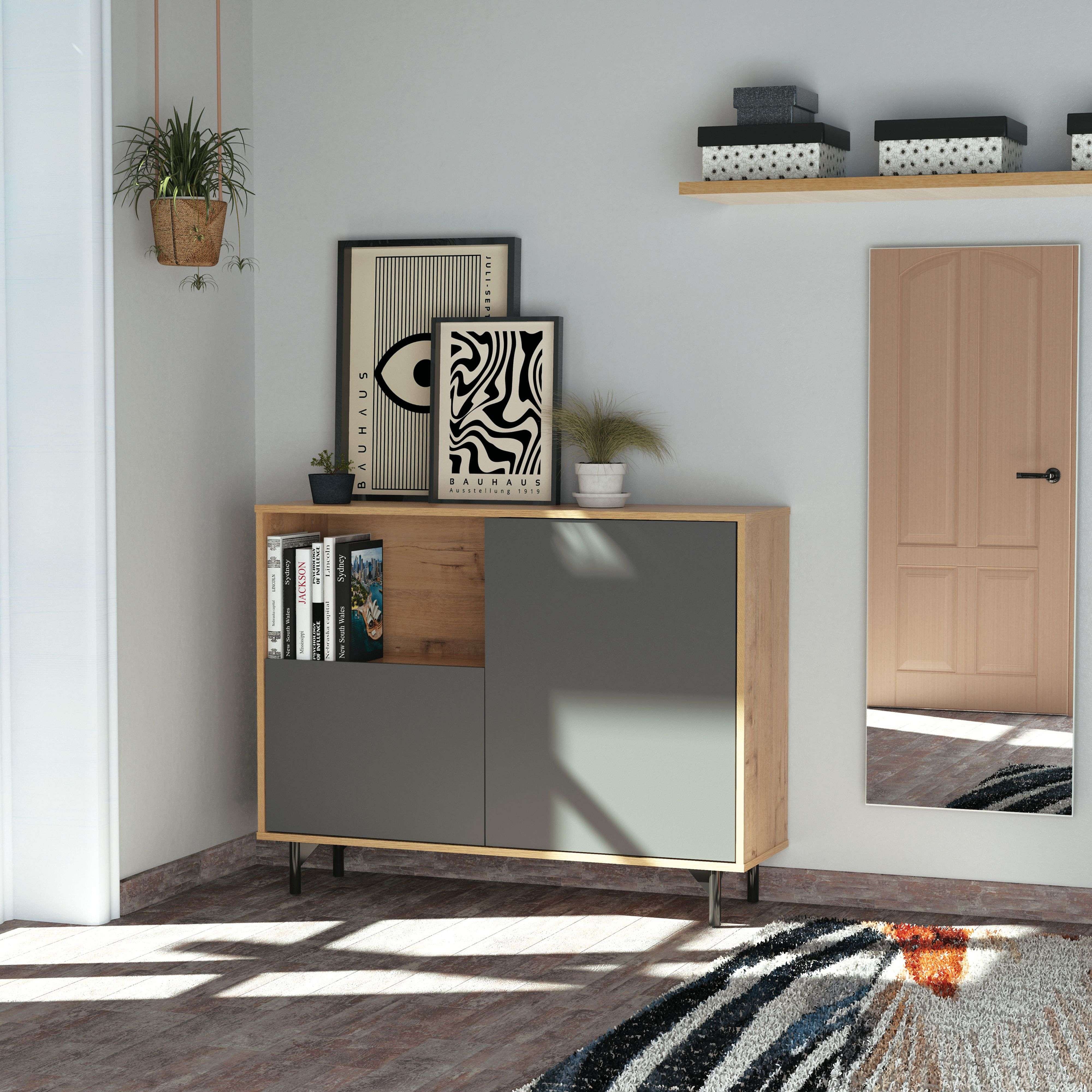 Aparador Salón Comedor Anori Patas Roble Gold Gris 112 cm
