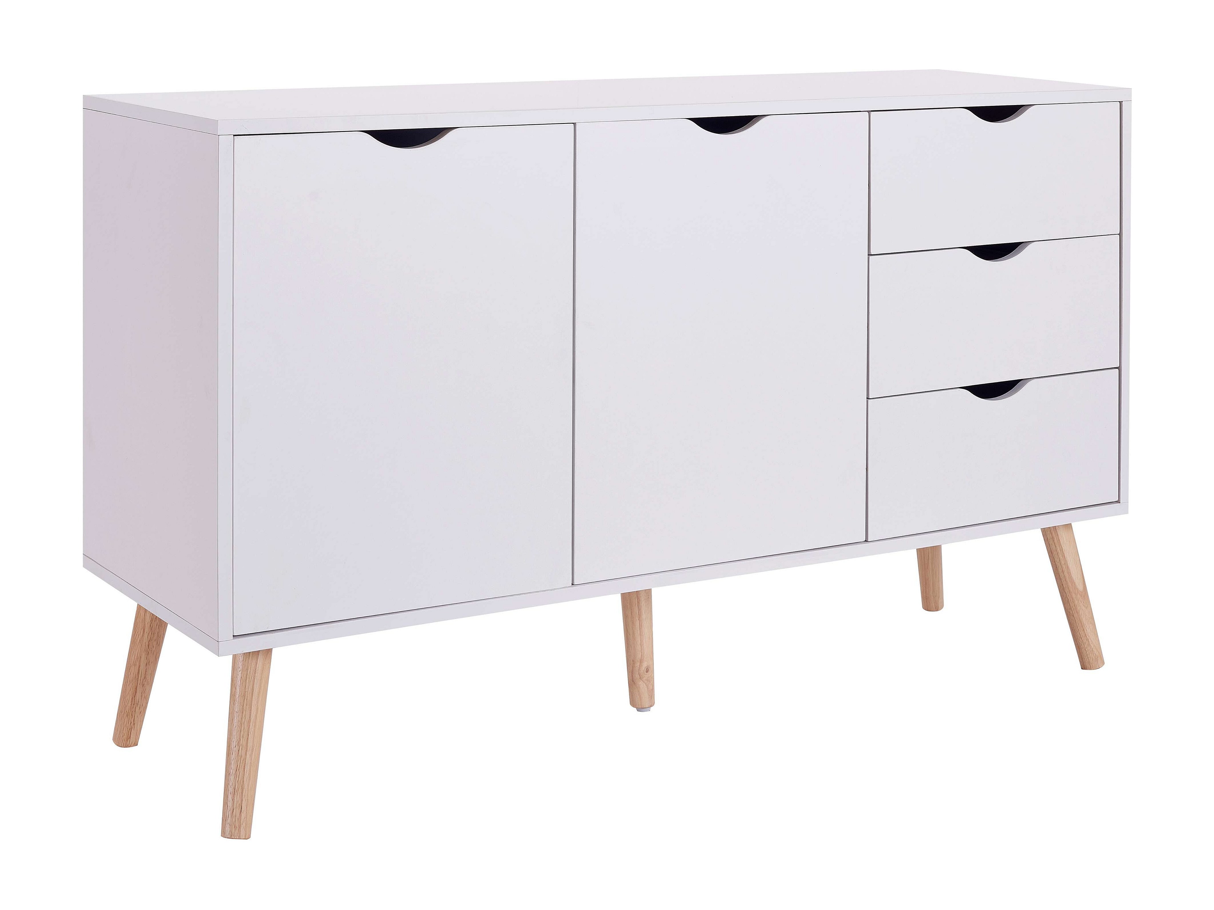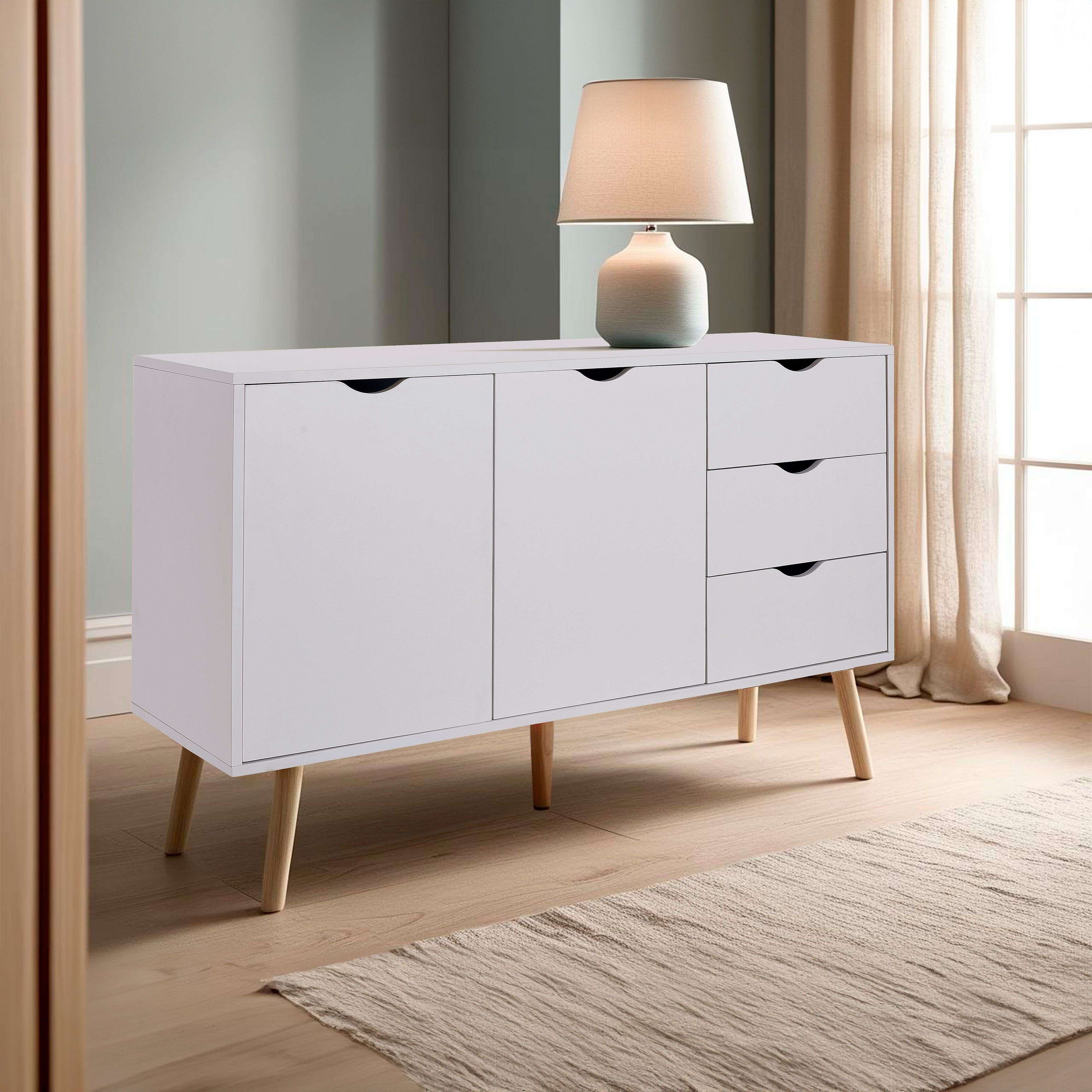 Aparador Tokio Estilo Nórdico Blanco Albo y Roble 3 Puertas 136 cm