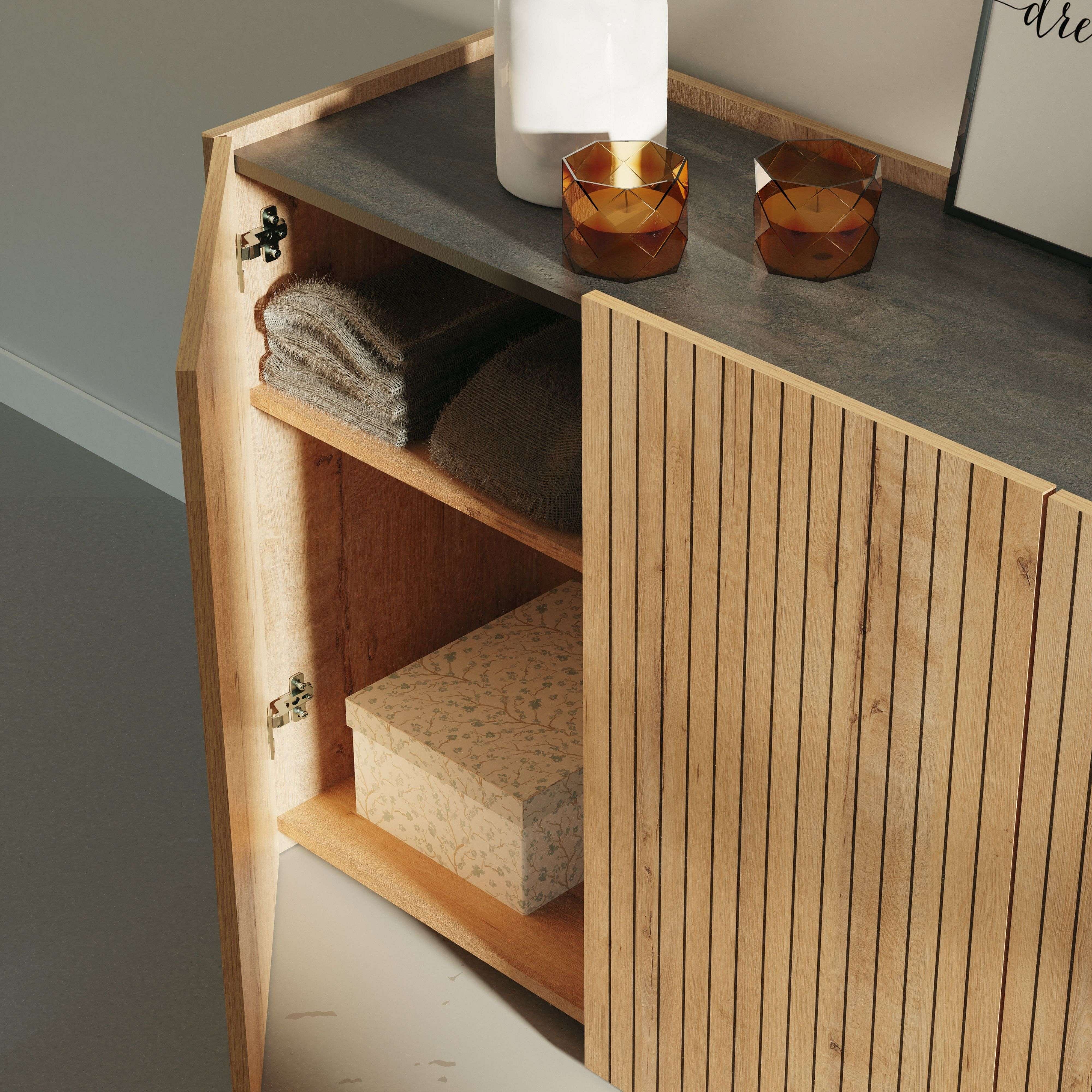 Aparador Salón Irati Moderno Roble Gold y Mármol 140 cm