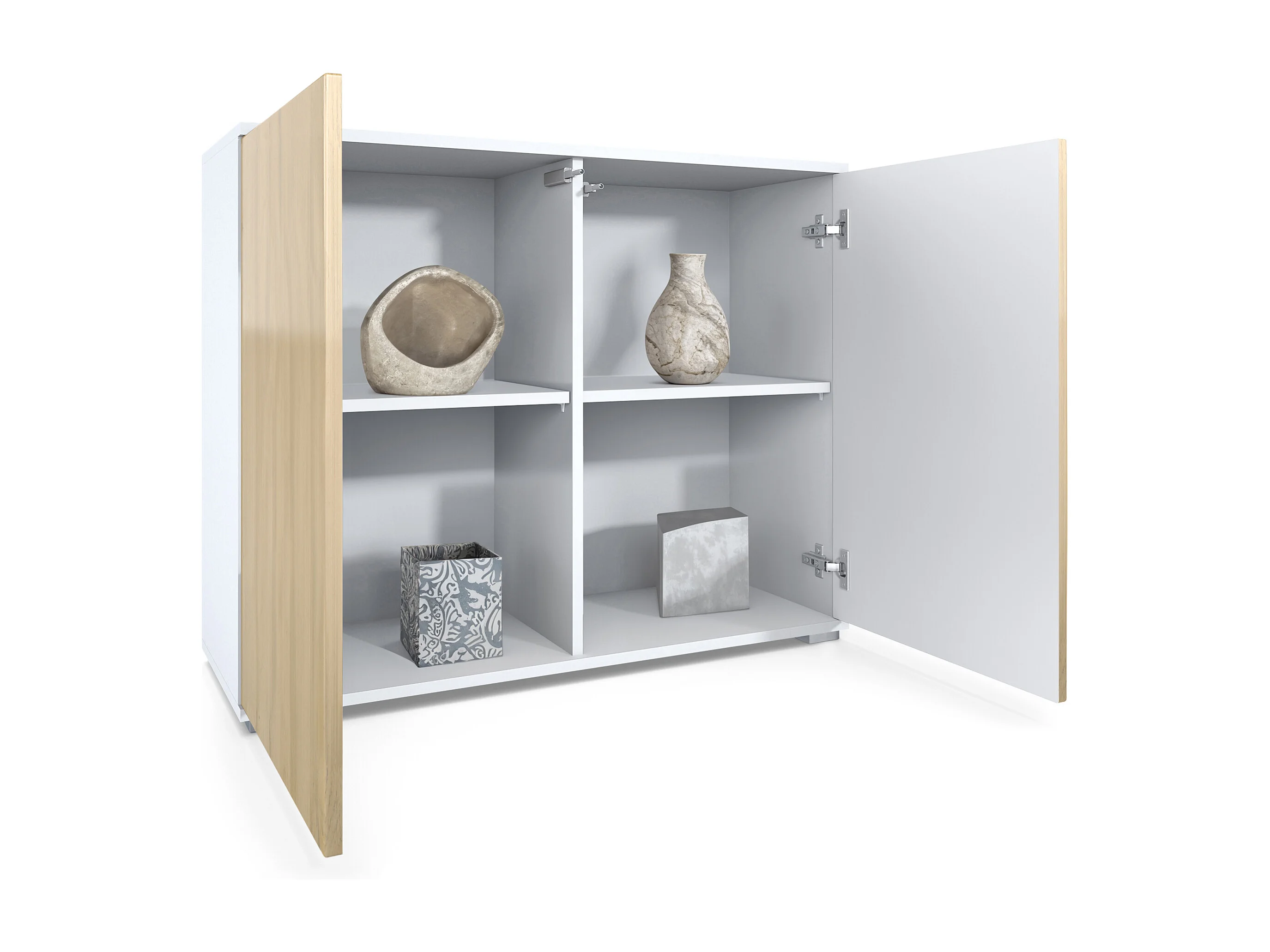 Aparador Rova V3 – Armario de cocina moderno con 4 puertas Push-to-Open blanco mate / negro de alto brillo (92,5 x 75.5 x 35)
