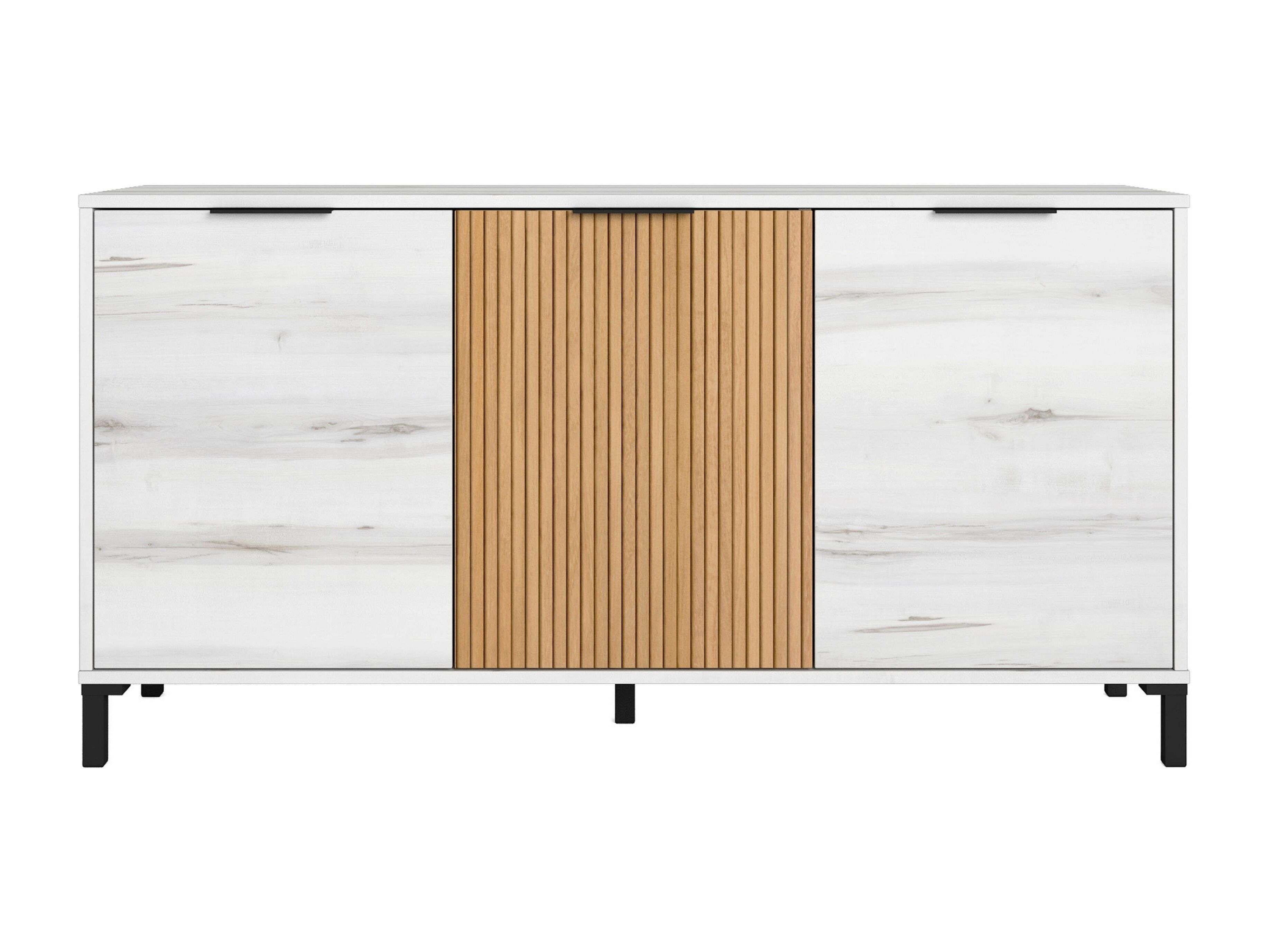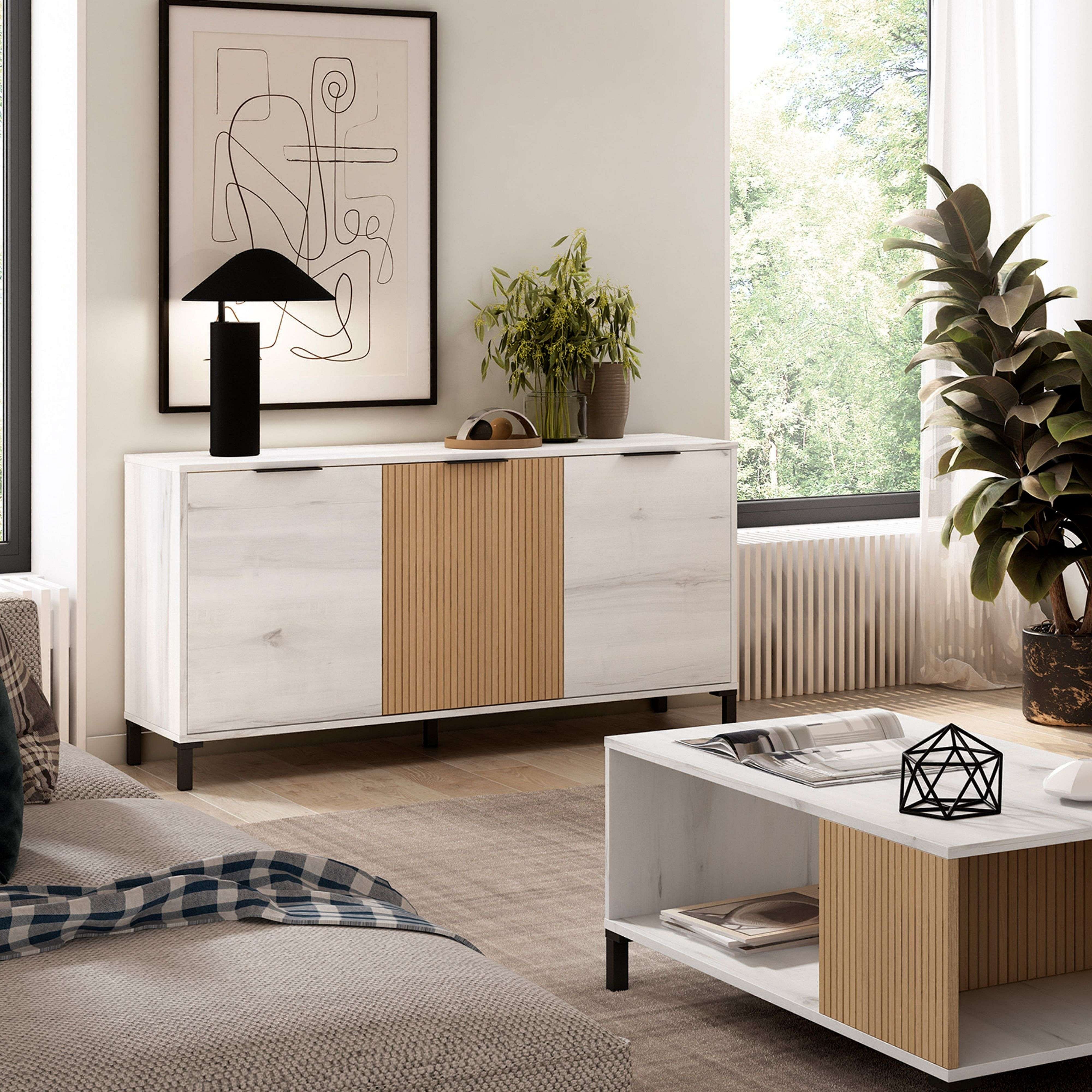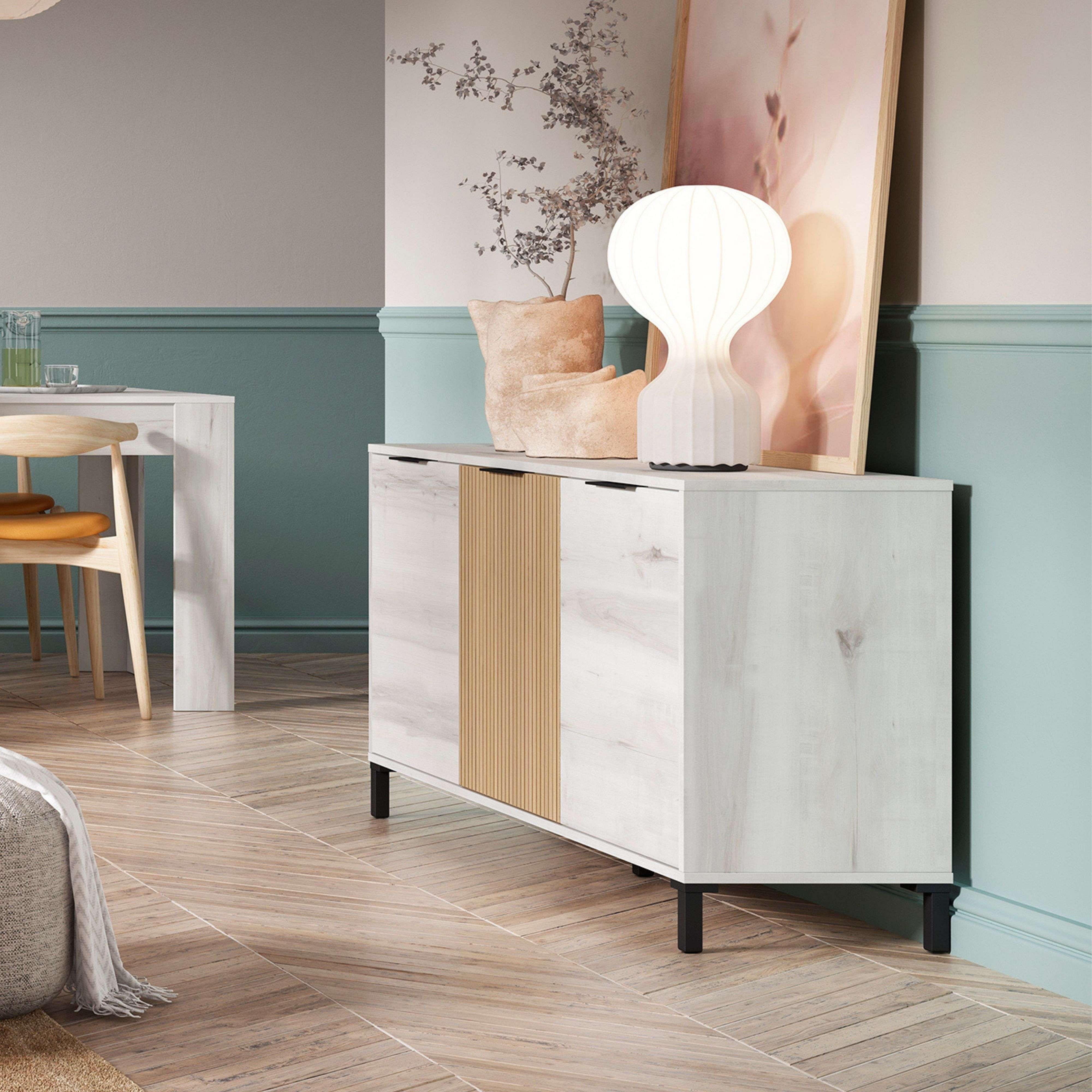 Aparador Tokio Estilo Nórdico Blanco Albo y Roble 3 Puertas 136 cm