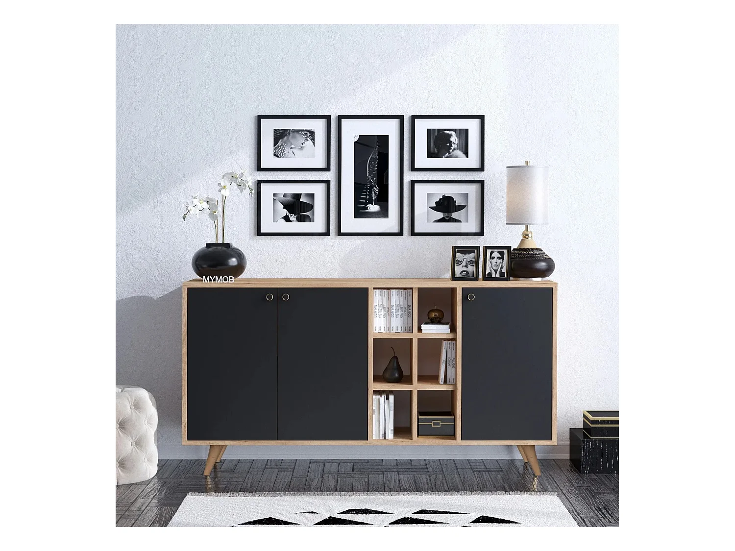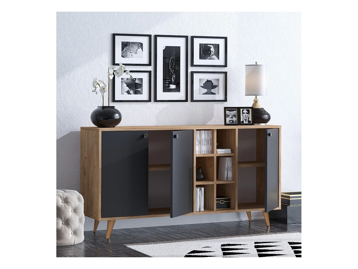 Aparador Pagina color roble Gris oscuro 140x40x86 cm