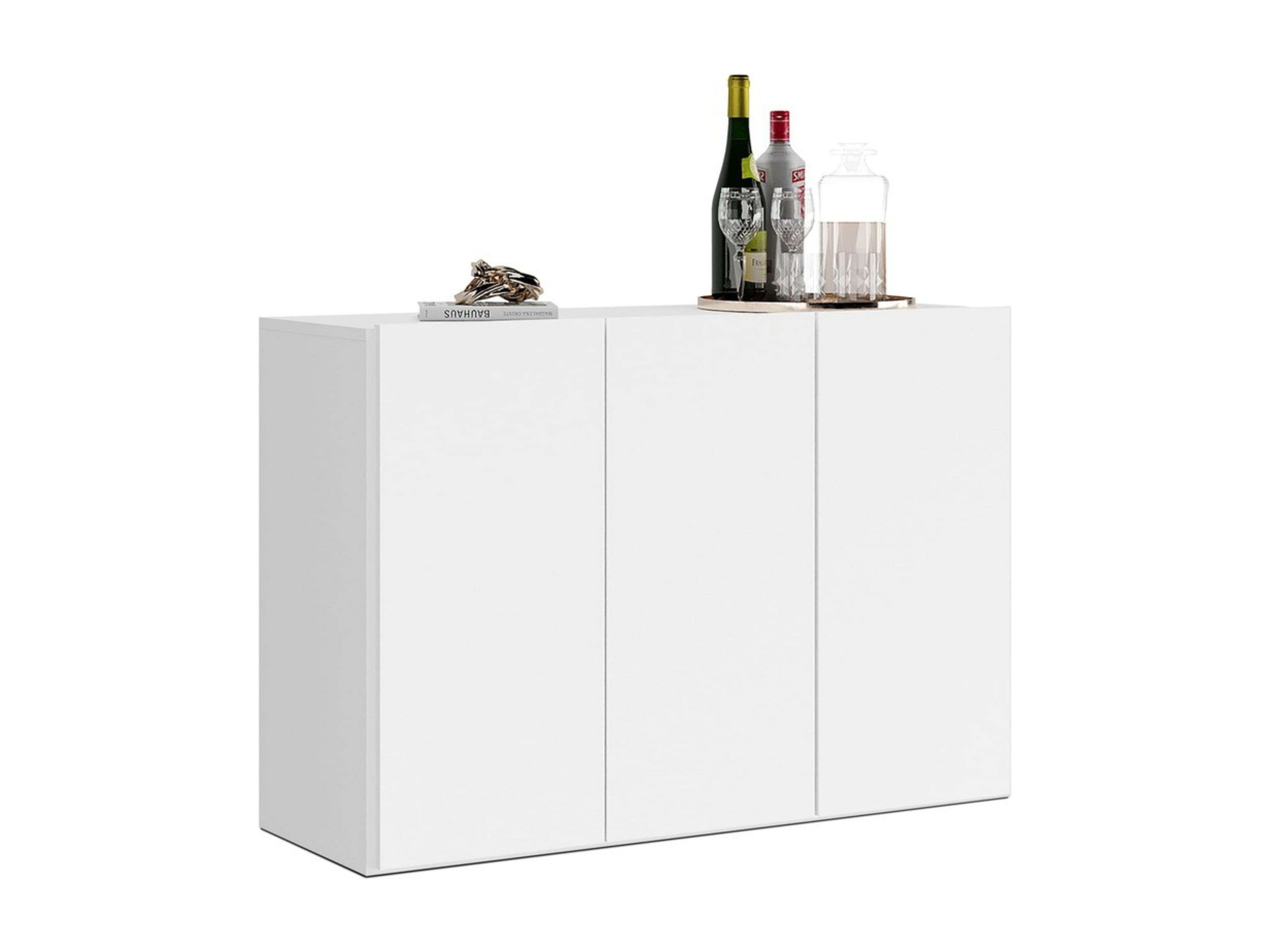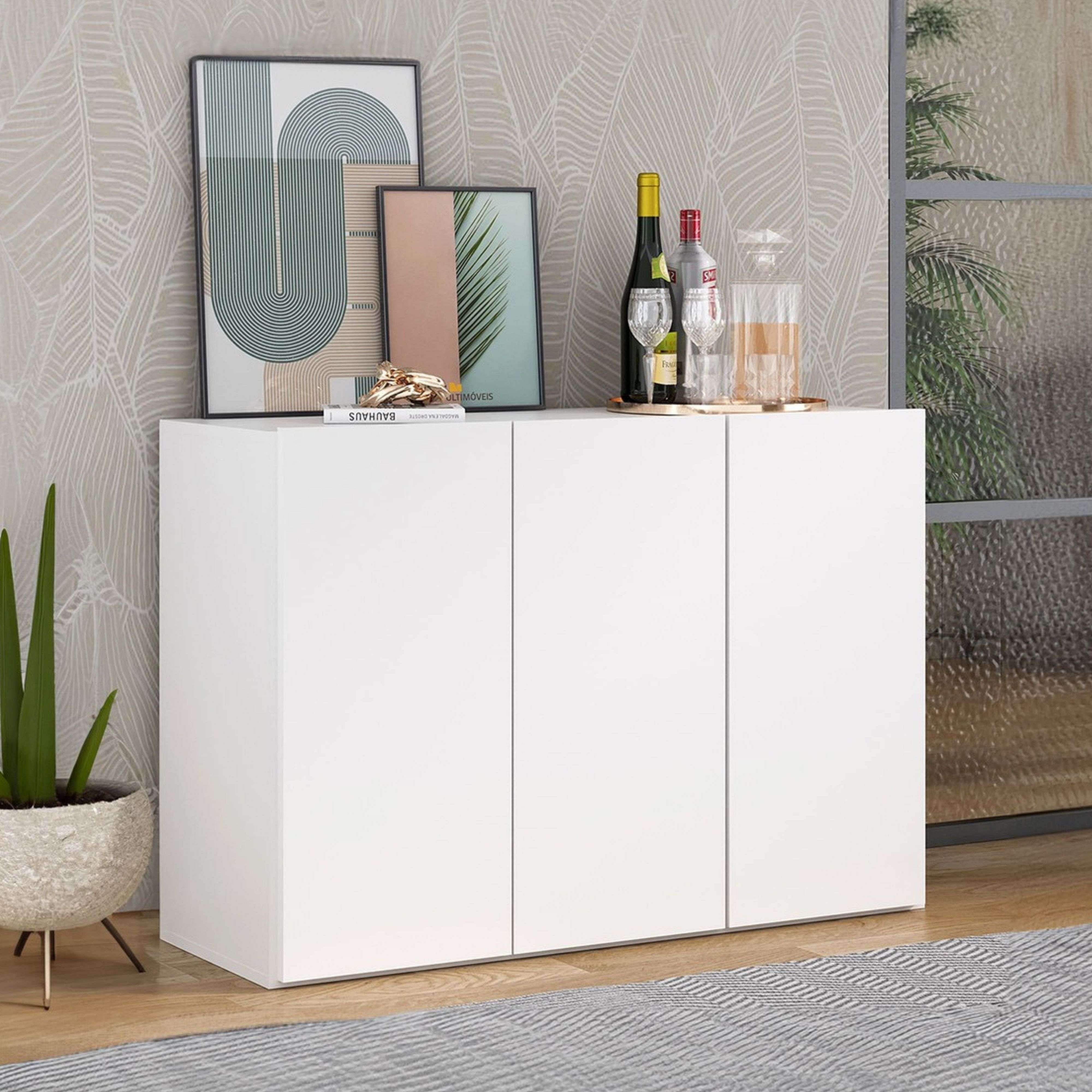 Aparador Anzio 3 Puertas, Patas Pino 140x68x35 cm Blanco Mate