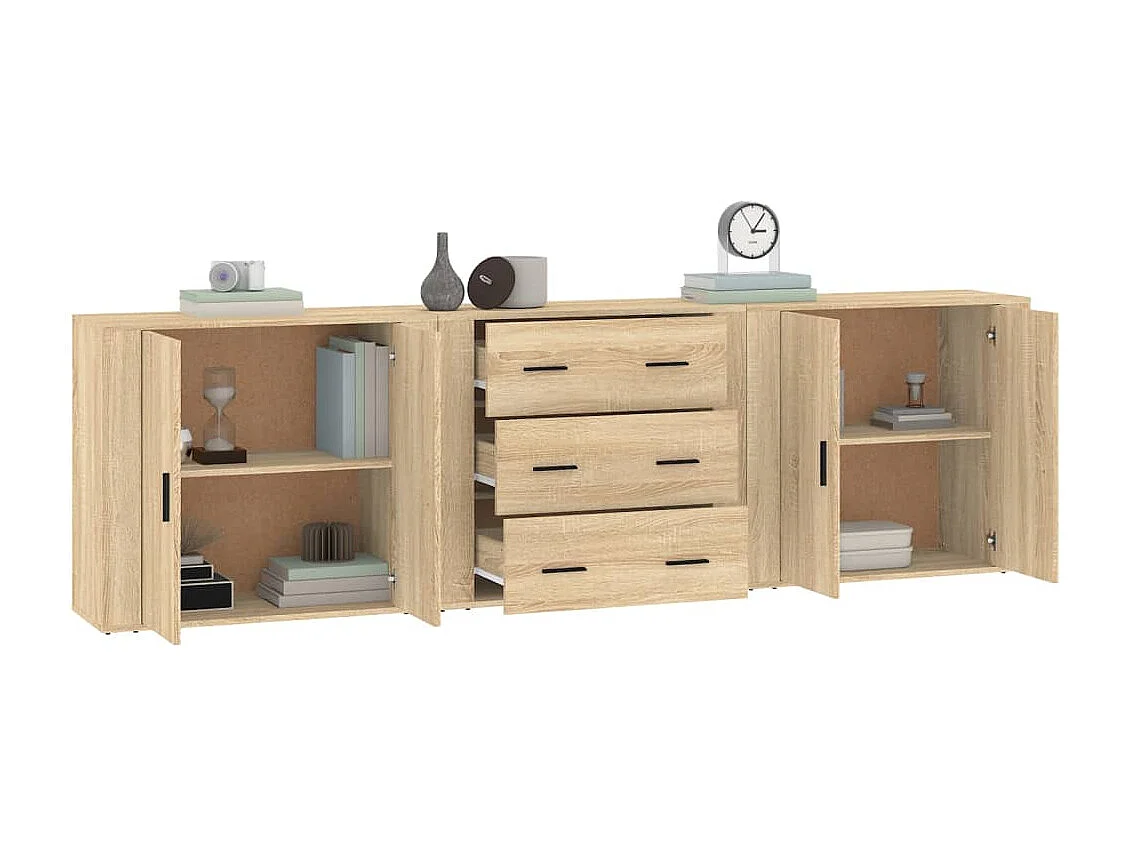 Aparadores 3 piezas madera contrachapada color roble sonoma