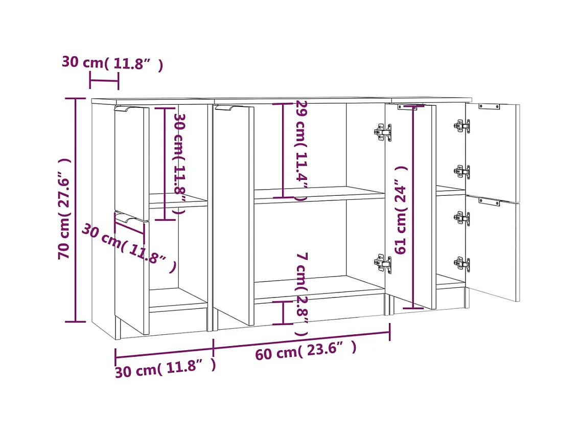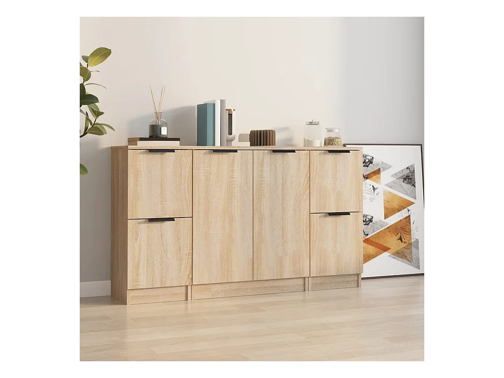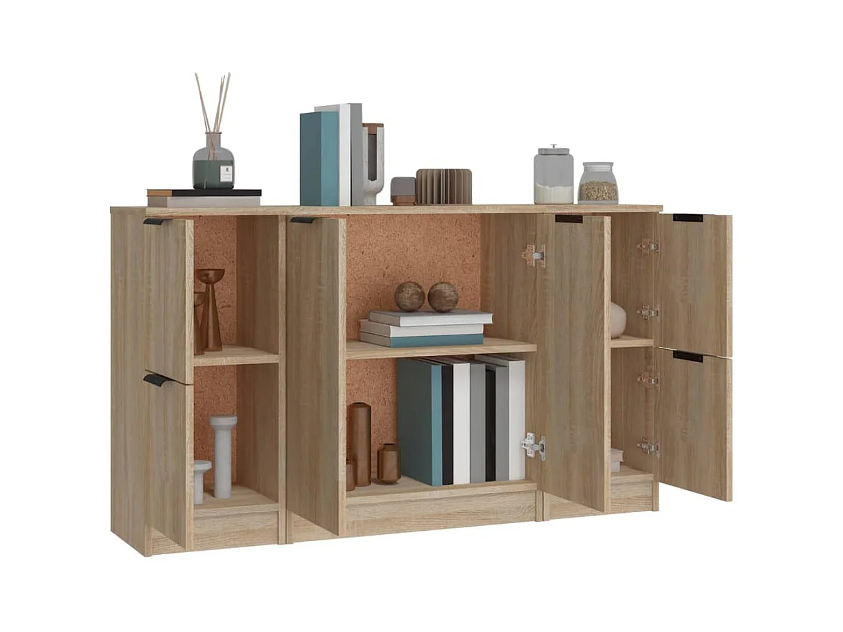 Aparadores 3 piezas madera contrachapada color roble sonoma