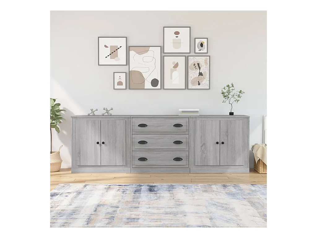 Aparadores 3 piezas madera contrachapada gris Sonoma