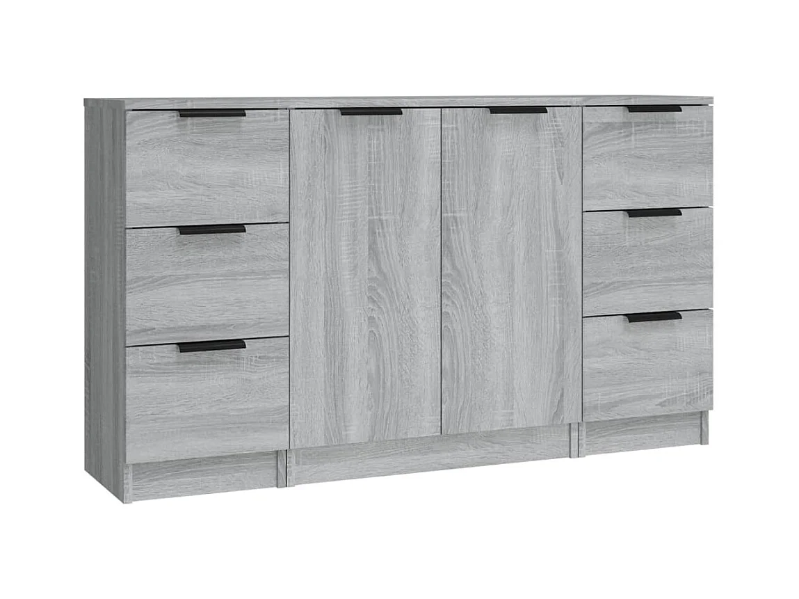 Aparadores 3 piezas madera contrachapada gris Sonoma ES38195