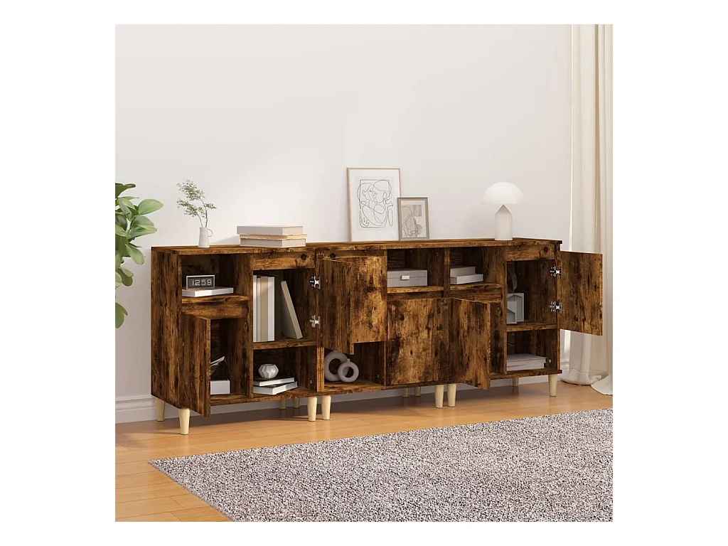 Aparadores 3 uds madera contrachapada roble ahumado 60x35x70 cm ES54264