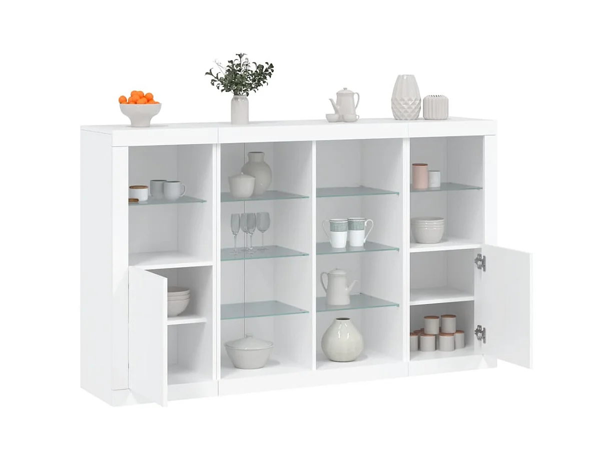 Aparadores con luces LED 3 piezas madera de ingeniería blanco ES779480