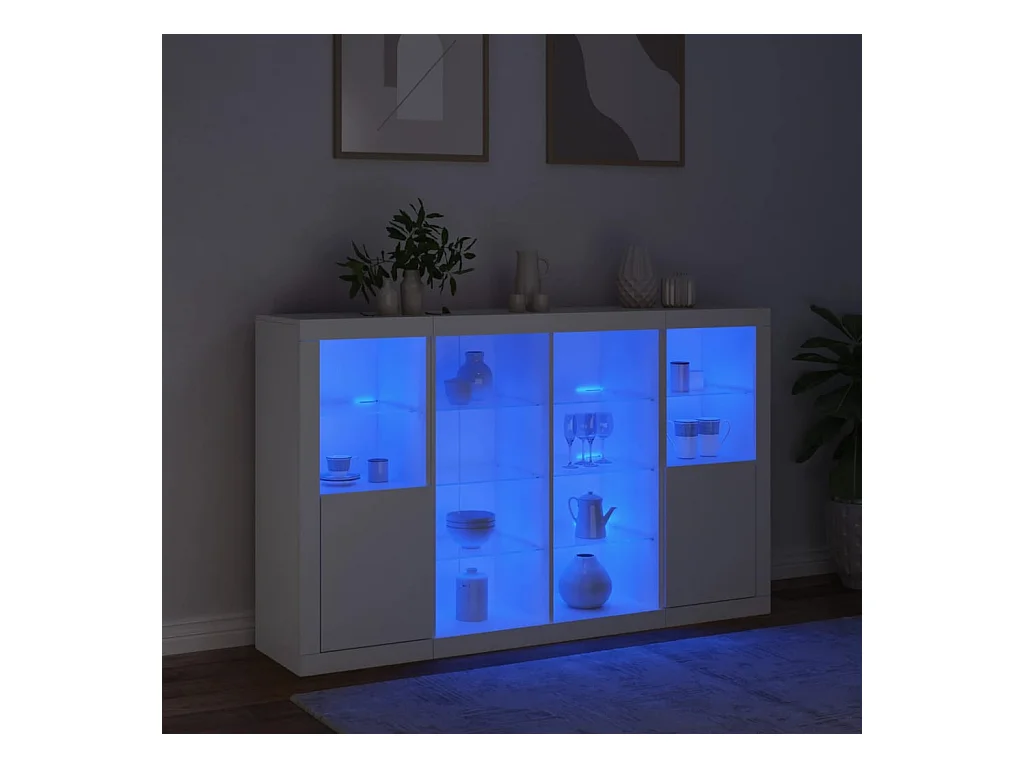 Aparadores con luces LED 3 piezas madera de ingeniería blanco ES995991