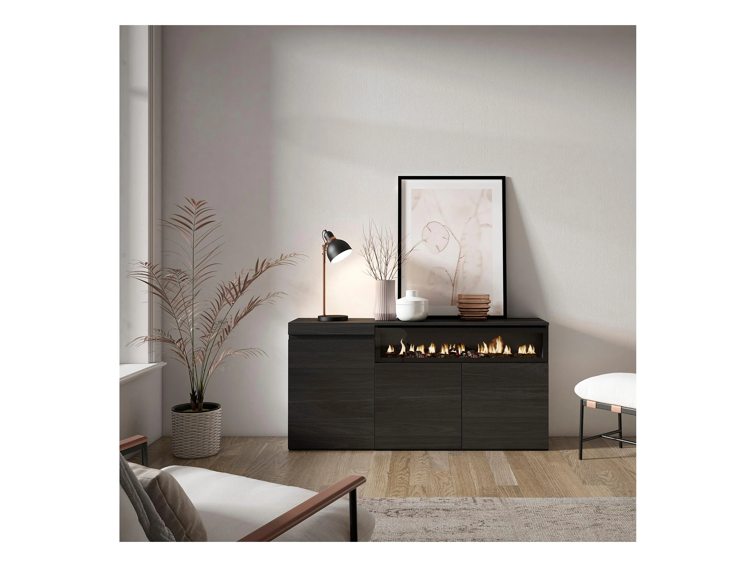 Aparadores para salón, 150x35x75cm, 3 Puertas, Chimenea eléctrica, Negro