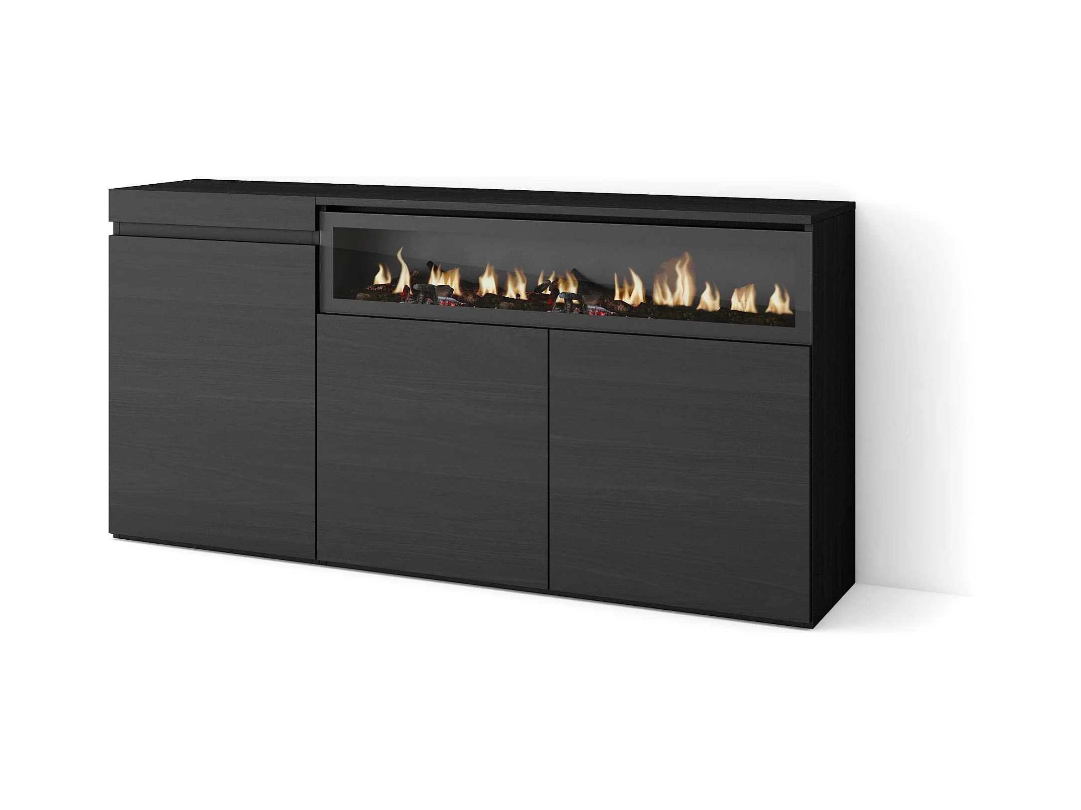 Aparadores para salón, 150x35x87cm, 3 Puertas, Chimenea eléctrica, Diseño industrial, Negro