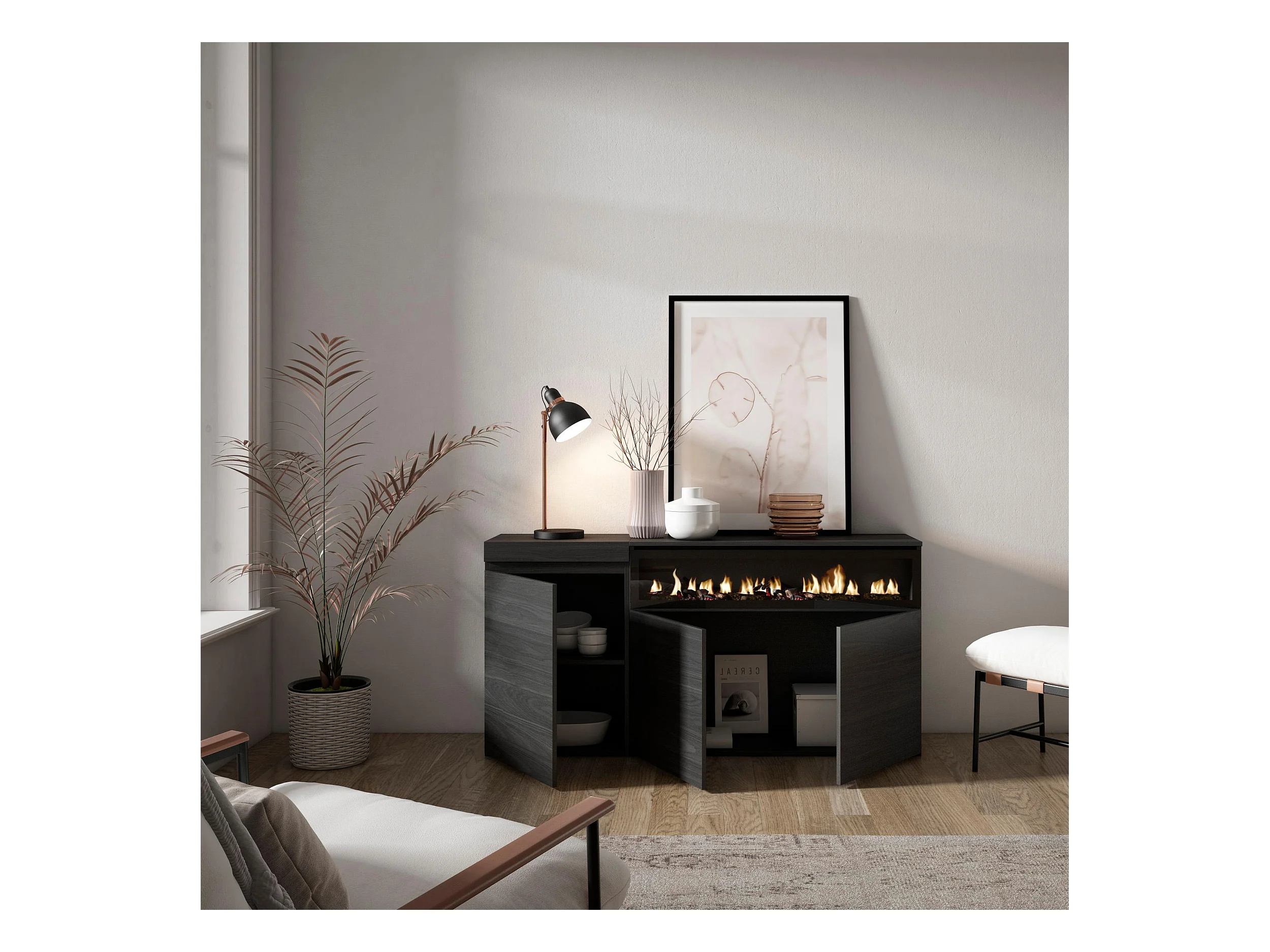 Aparadores para salón, 200x35x75cm, 4 Puertas, Chimenea eléctrica, Negro