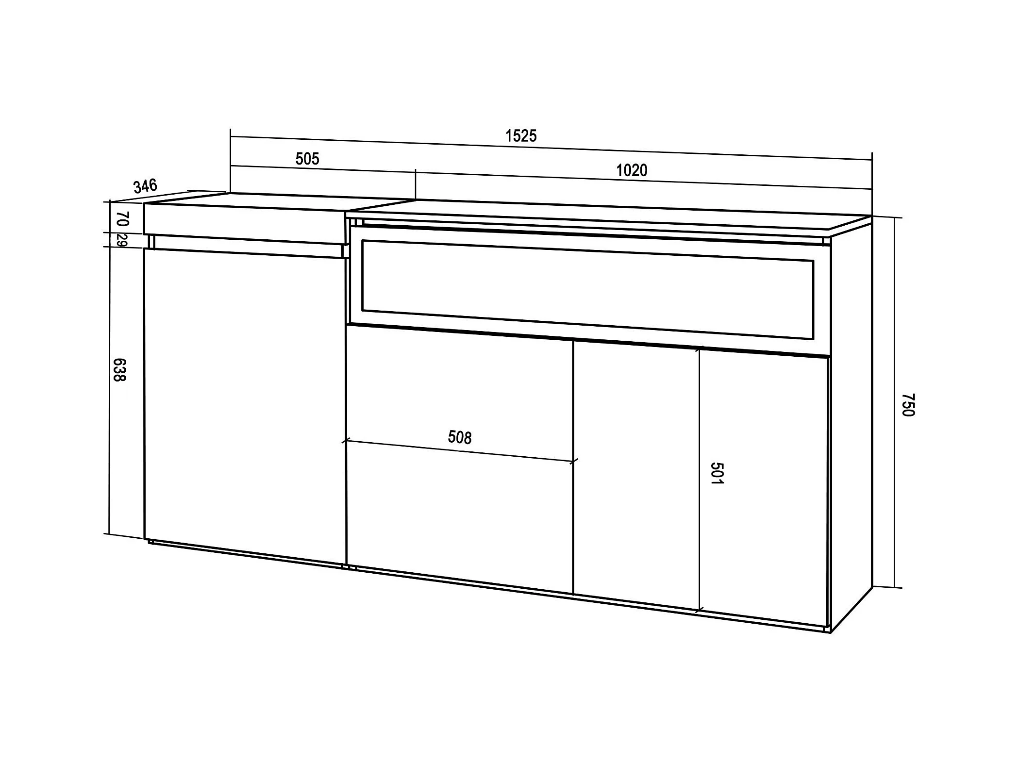 Aparadores para salón, 150x35x87cm, 3 Puertas, Diseño industrial, Negro