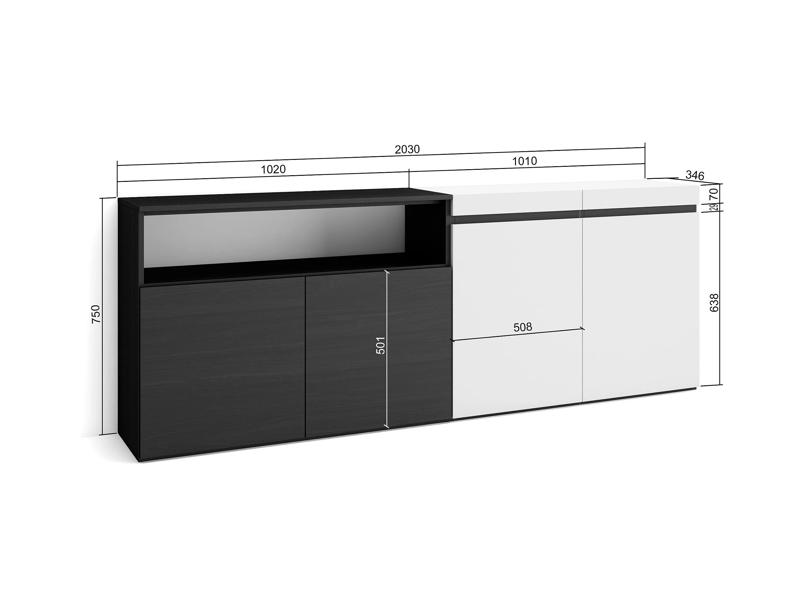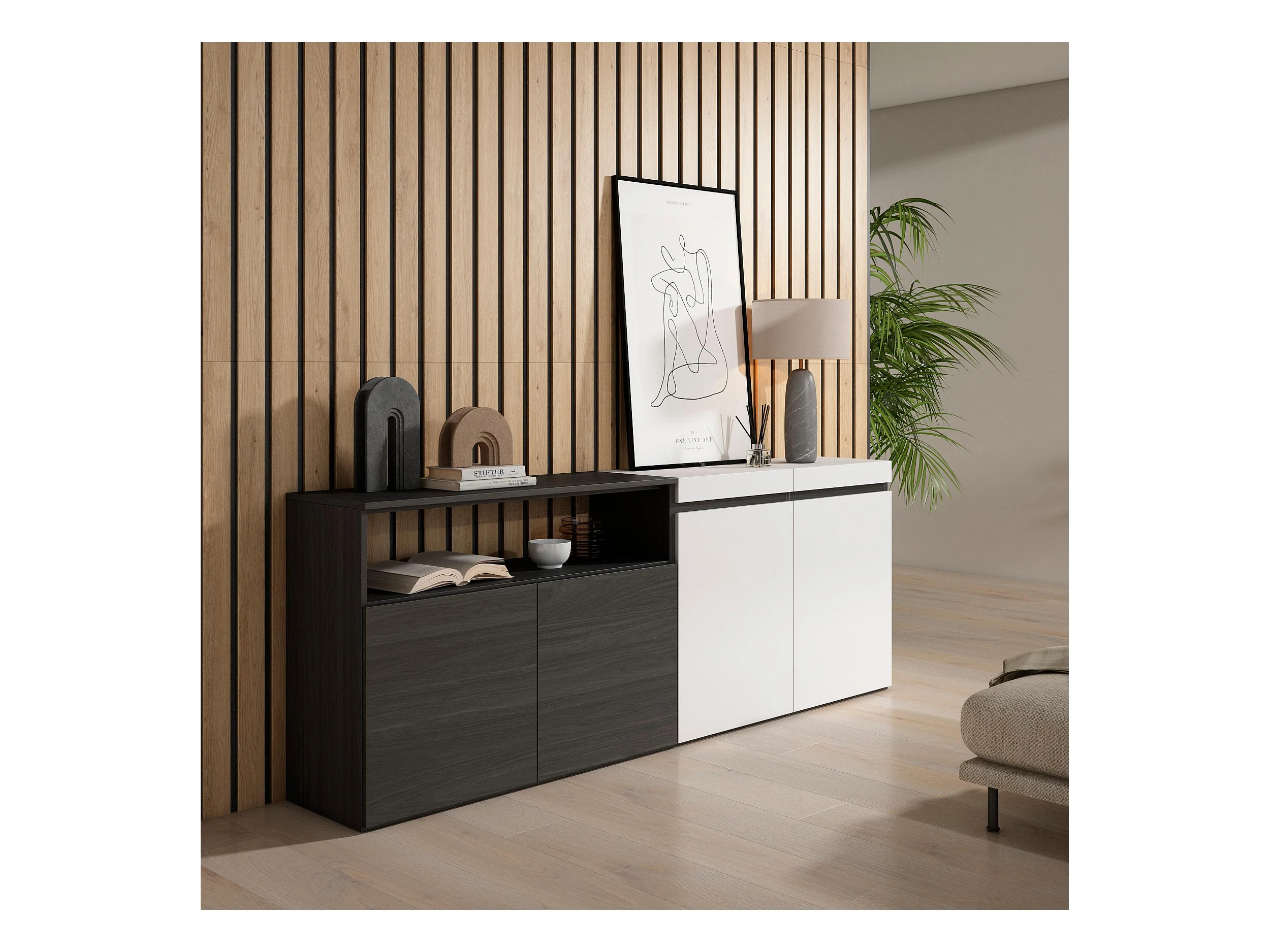 Aparadores para salón, 200x35x87cm, 4 Puertas, Diseño industrial, Blanco y negro