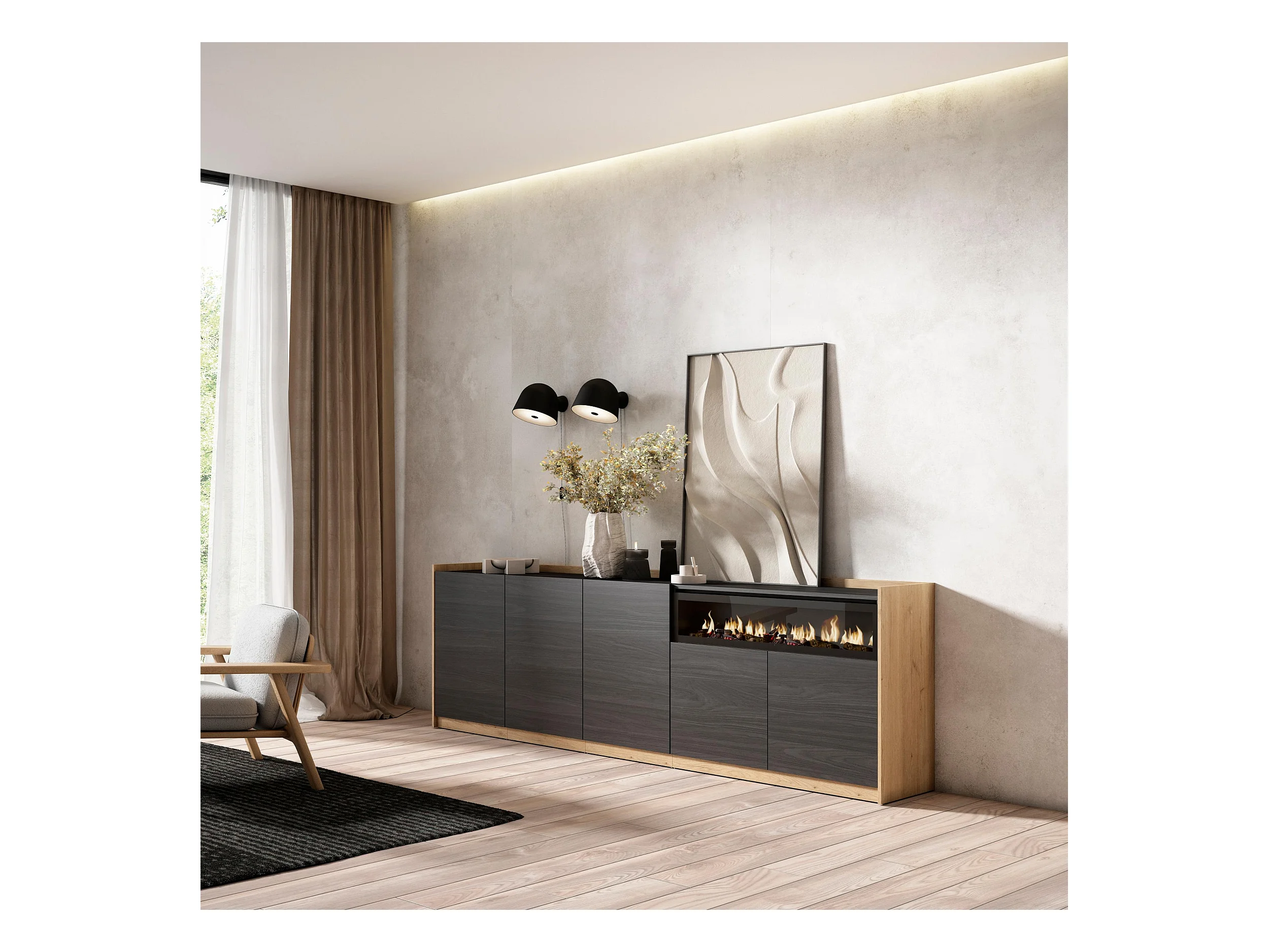 Aparadores para salón, 260x80x37 cm, 5 Puertas, Chimenea eléctrica, Negro y roble