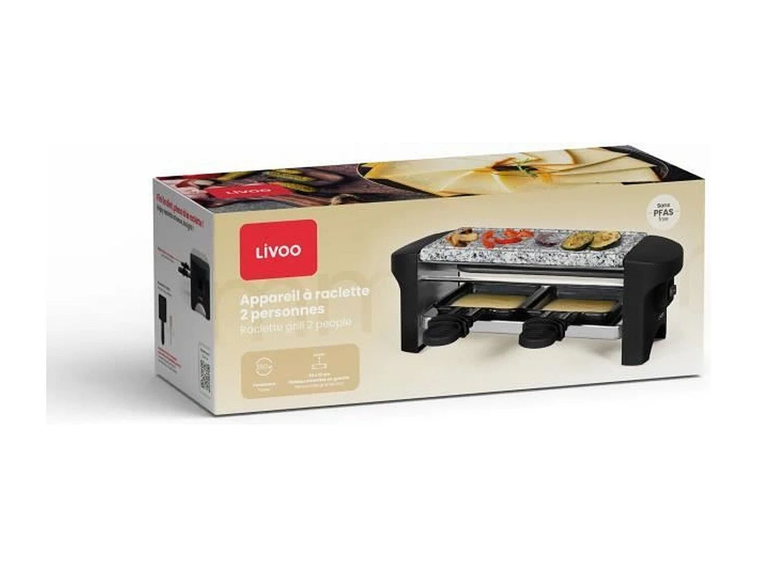 Aparato de Raclette Livoo DOC156N para 2 personas 350W con bandeja de granito extraíble y cacerolas antiadherentes