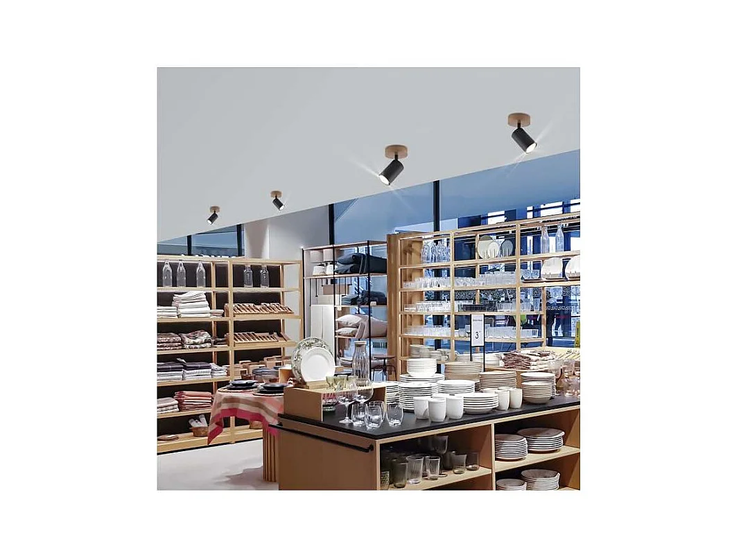 Aplique a pared modelo Maena acabado negro/cuero, 18cm(alto) 10cm(ancho) 8cm(fondo)