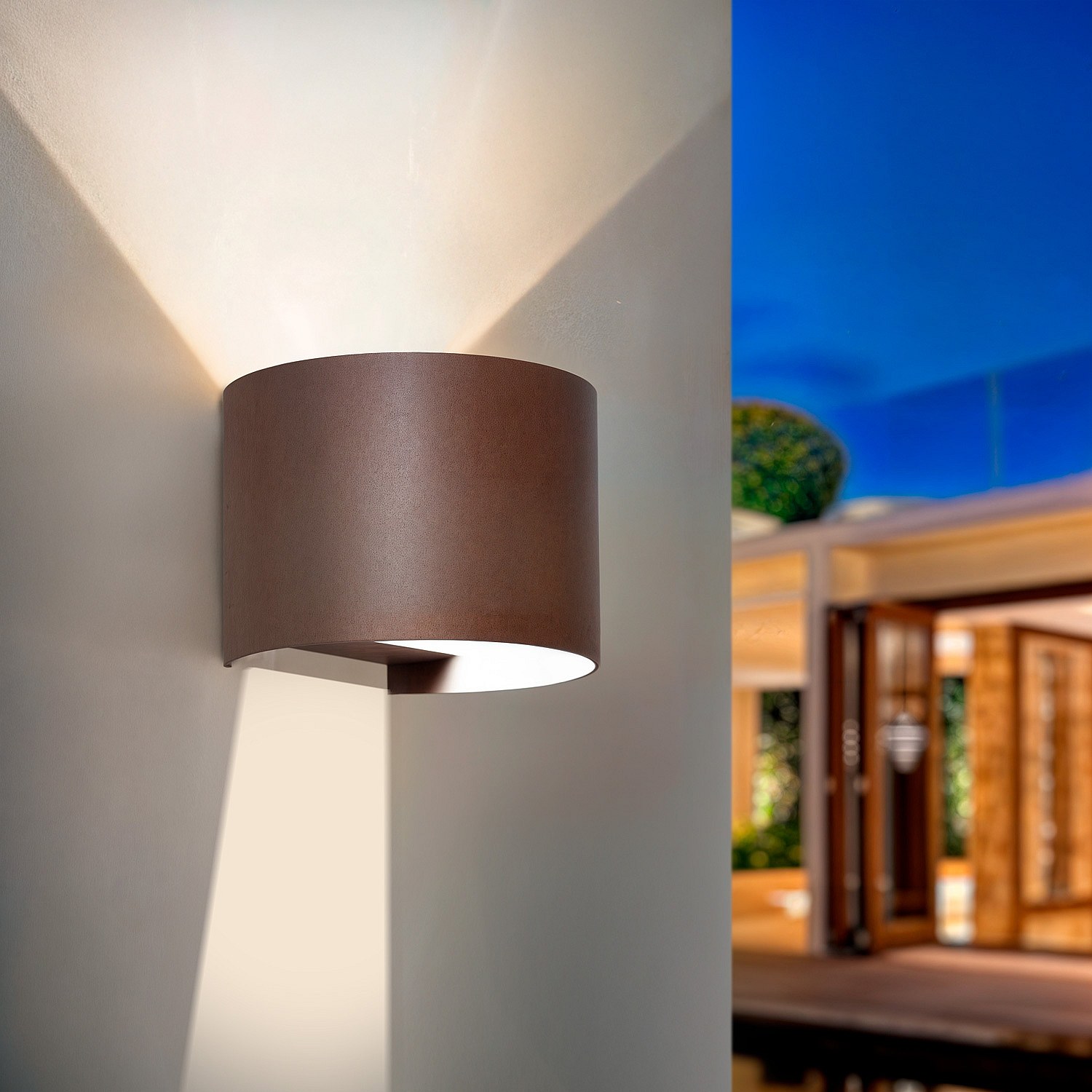 Aplique de Pared Exterior LED 10W Aluminio Iluminación Doble Cara CCT Seleccionable Denny Round Óxido