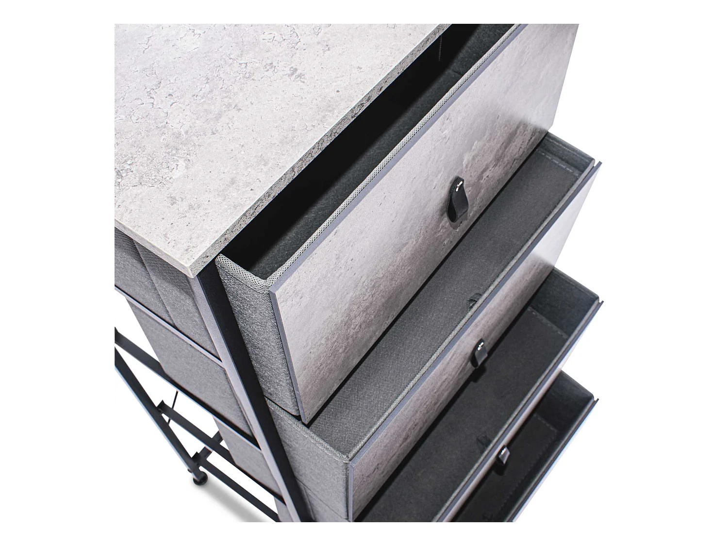 Apollonia - Cajonera 4 cajones de tela, frontal y encimera superior de madera melamínica laminada