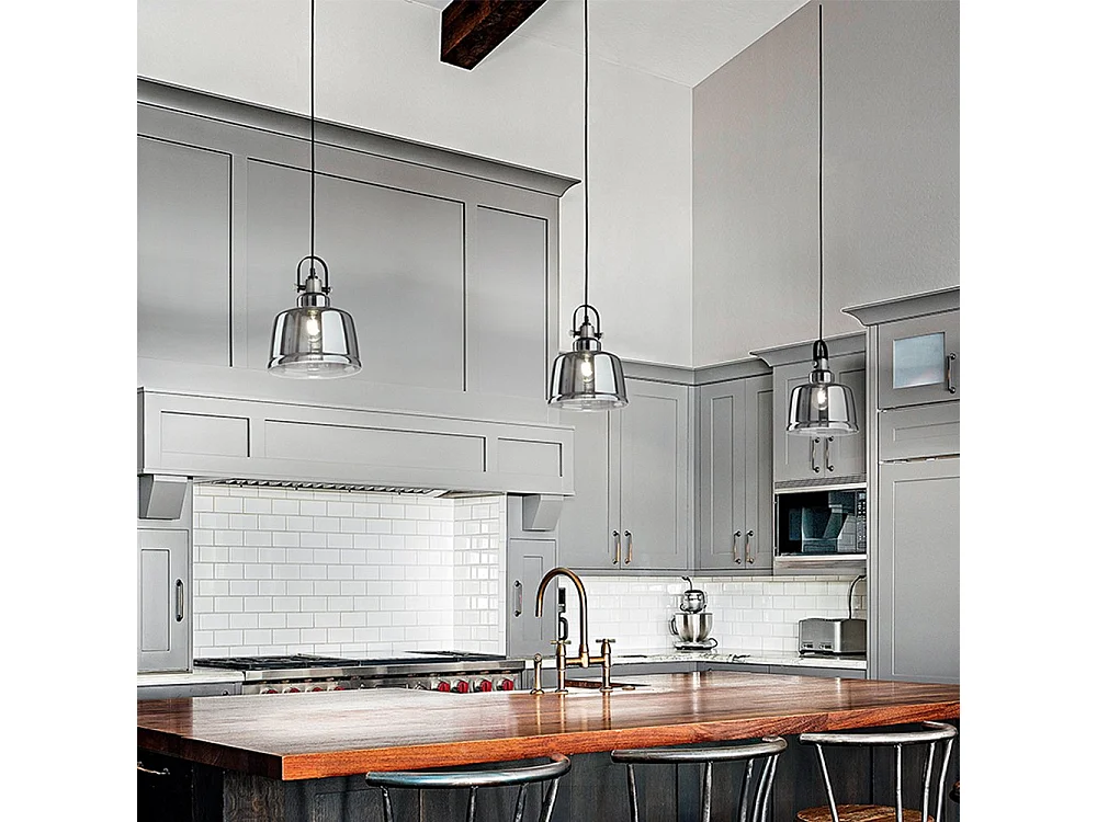 Sospensione Contemporanea Vintage Metallo Nero Vetro Fumè 1 Luce E27