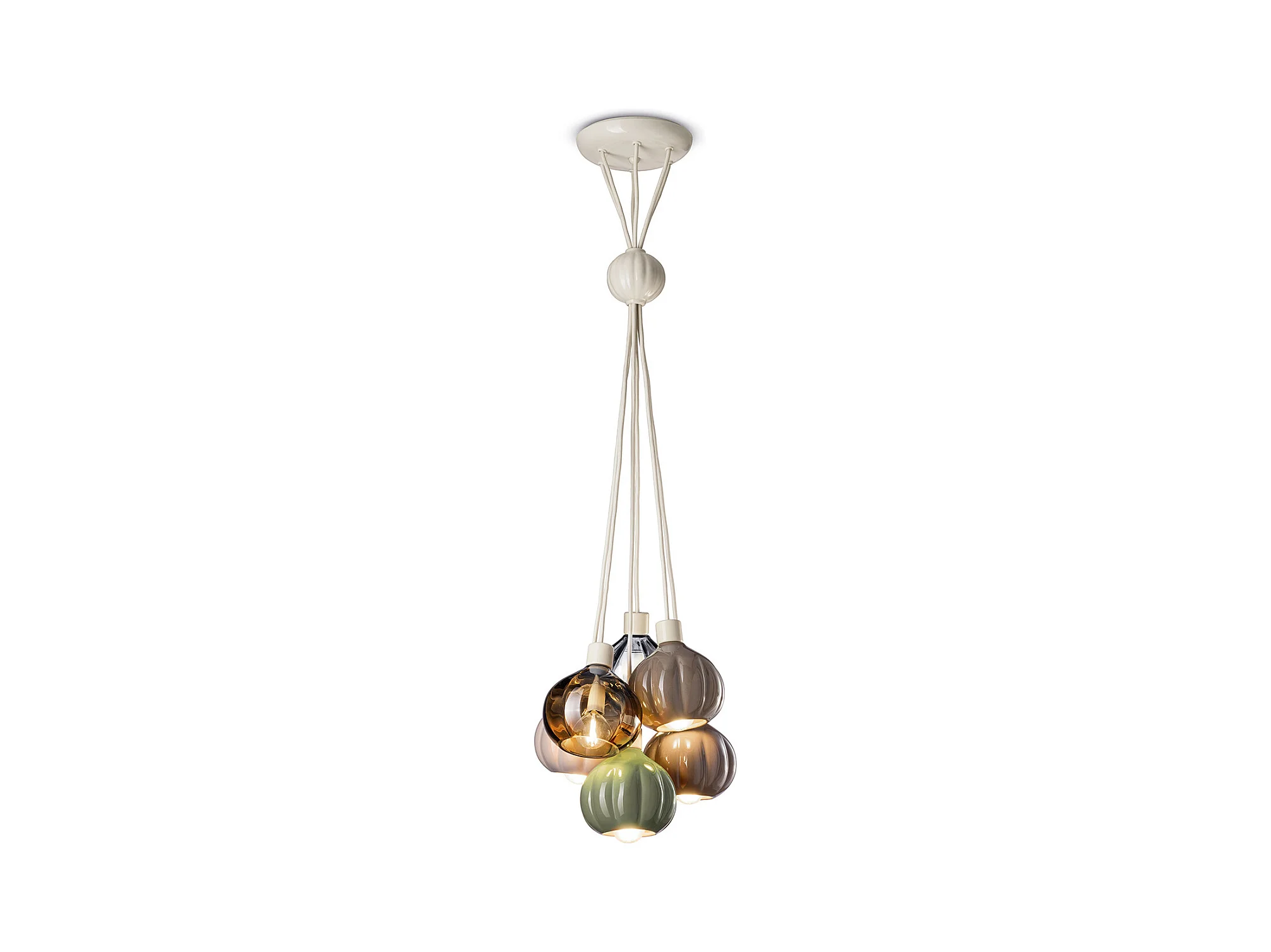 Lampadario Vintage Decò Afoxe' Alluminio Ceramica Vetro Finitura Mix 6 Luci E14