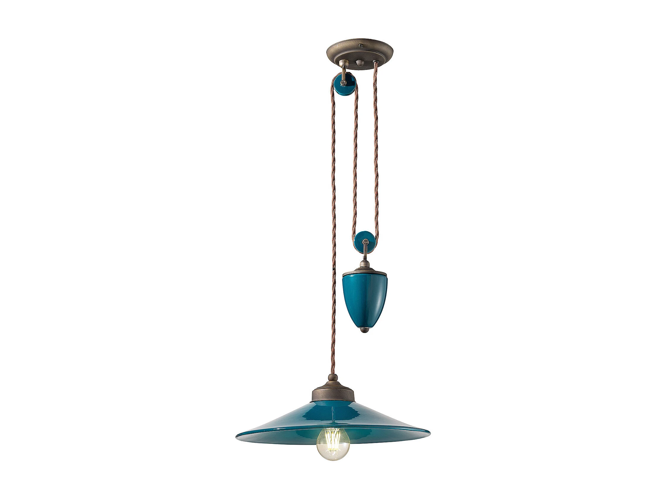 Lampadario Vintage Colors Saliscendi Ferro E Ceramica Verde Petrolio 1 Luce E27