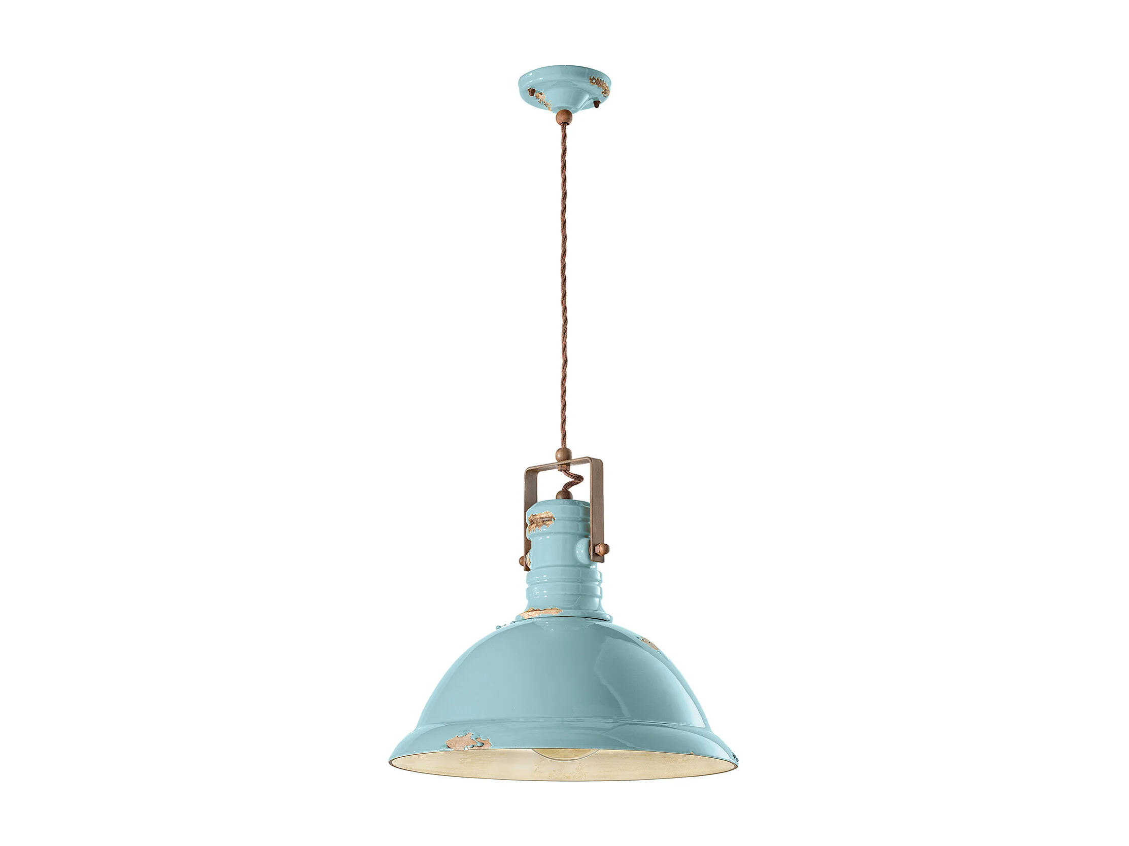 Lampadario Industrial Ferro E Ceramica Vintage Azzurro 1 Luce E27 40Cm