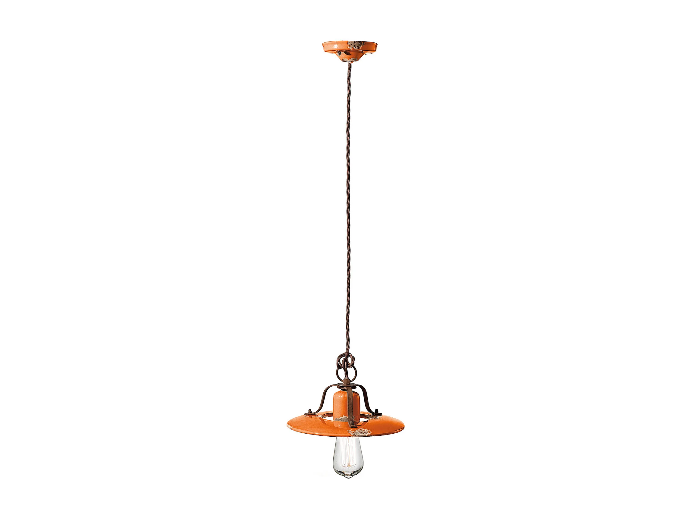 Lampadario Vintage Country Ferro E Ceramica Arancio 1 Luce E27 25Cm
