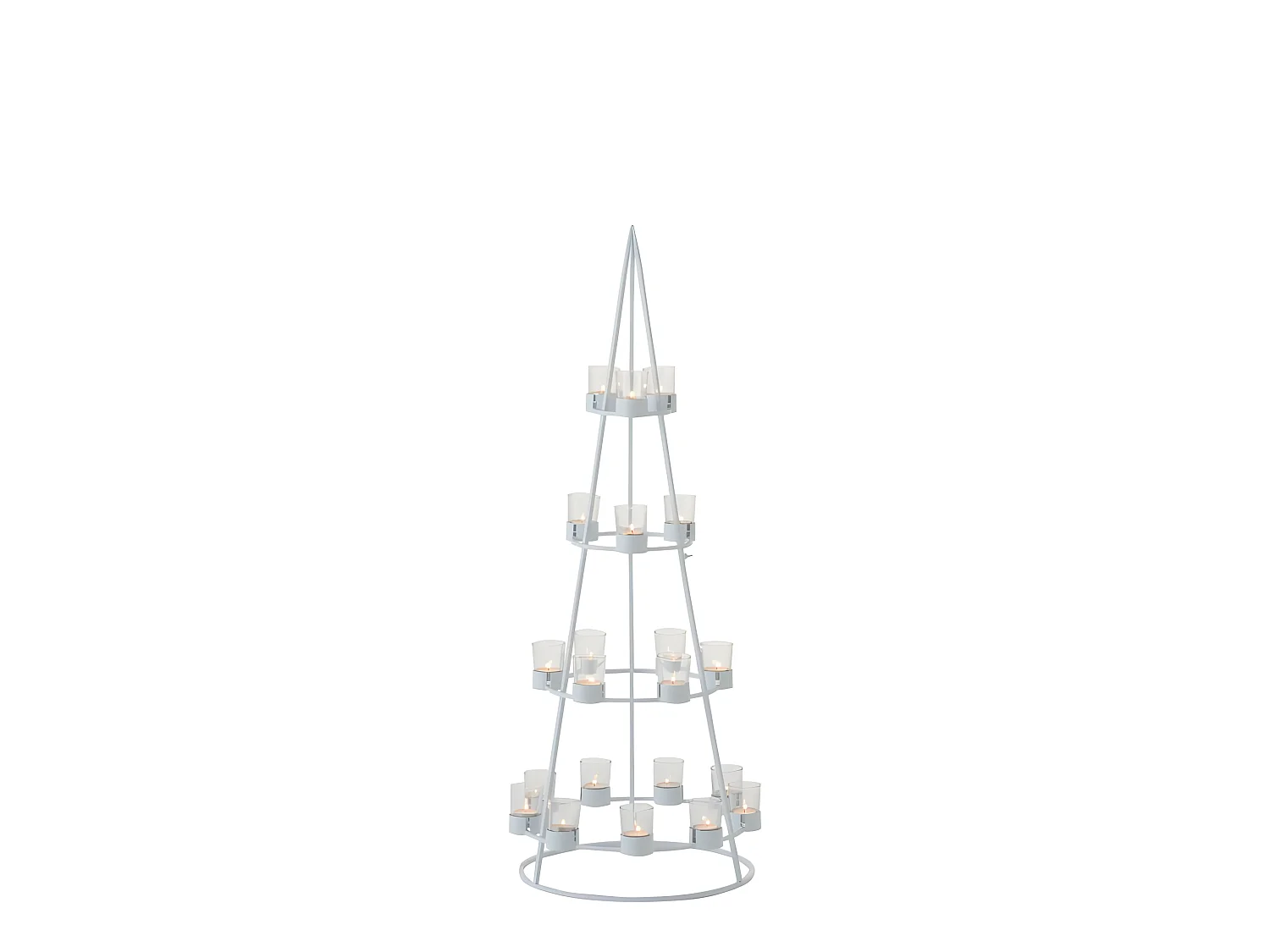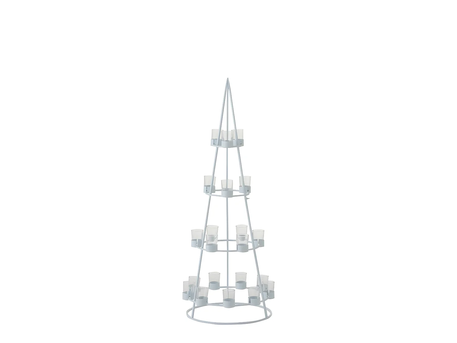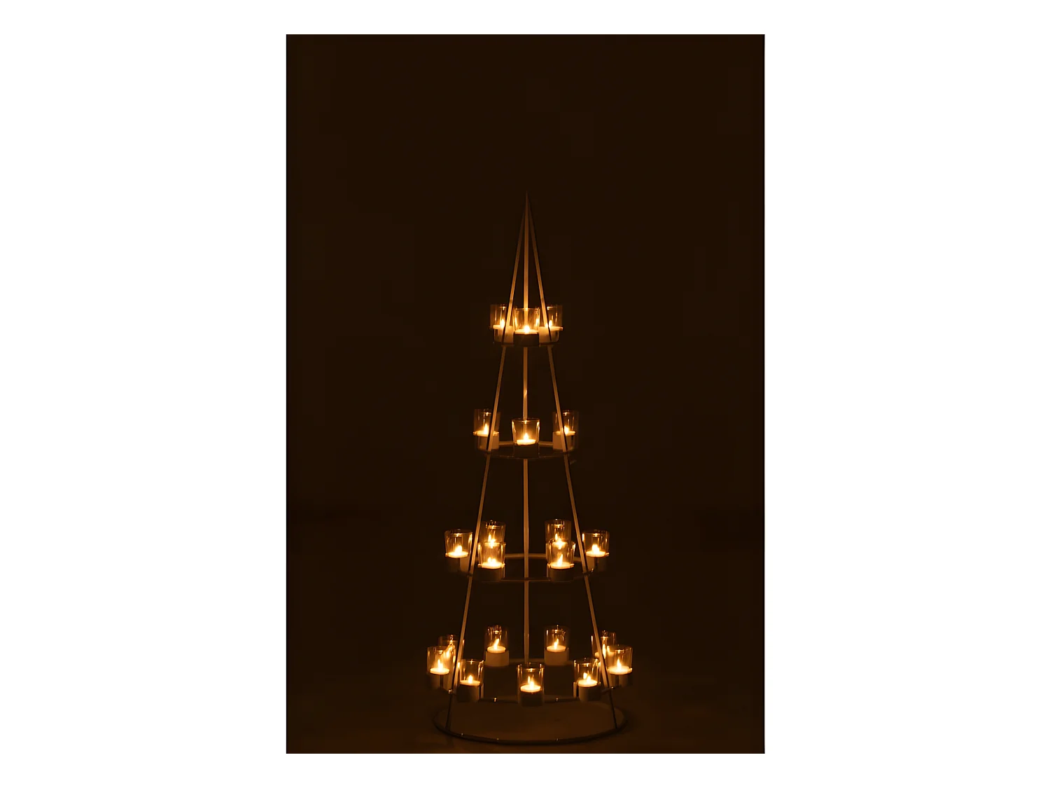 Árbol con 21 portavelas de vidrio en metal blanco 42x42x110 cm